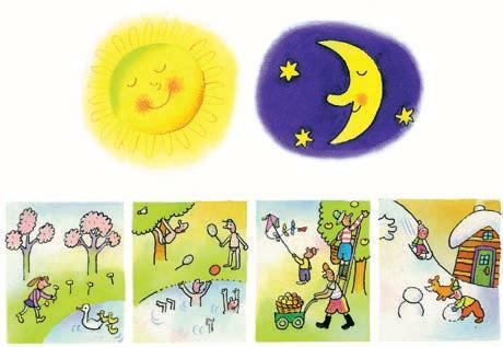 Při chůzi se pravidelně střídá levá noha s pravou. Jednou je napřed pravá, potom zase levá. Poznáte podle obrázků, co se v našem životě ještě pravidelně střídá?