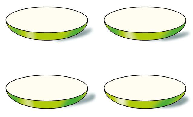 Rozděluj po jedné 16 třešní na 4 talíře tak, aby bylo na každém talíři stejně třešní.