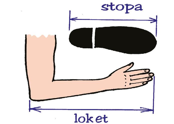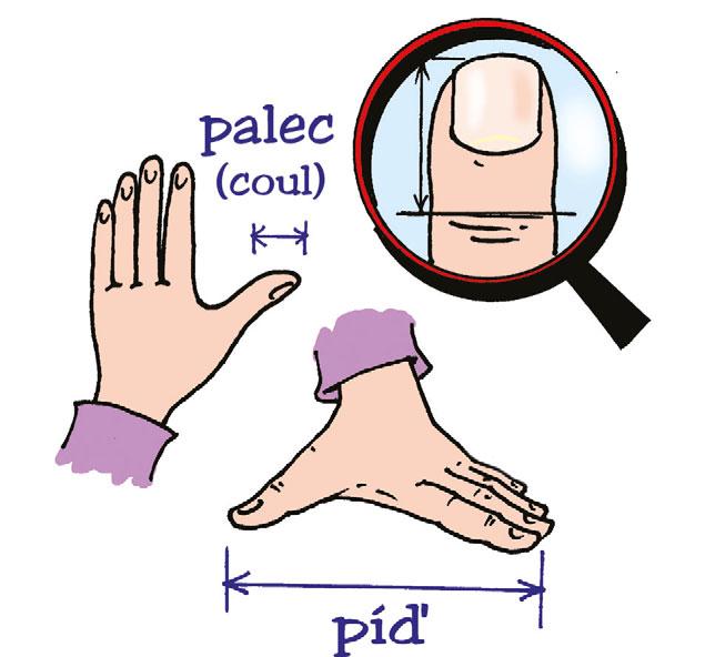 2. Stopa, loket, píď a palec jsou staré jednotky délky. Co se s nimi asi měřilo? Změř pomocí těchto jednotek některé předměty ve třídě. Prv