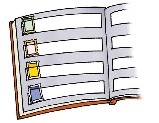 a) Alenka si rovnala svou sbírku známek. Na každé stránce měla 20 známek rovnoměrně rozdělených ve 4 řadách. Kolik známek měla v jedné řadě? Dokresli do alba zbytek známek. VV