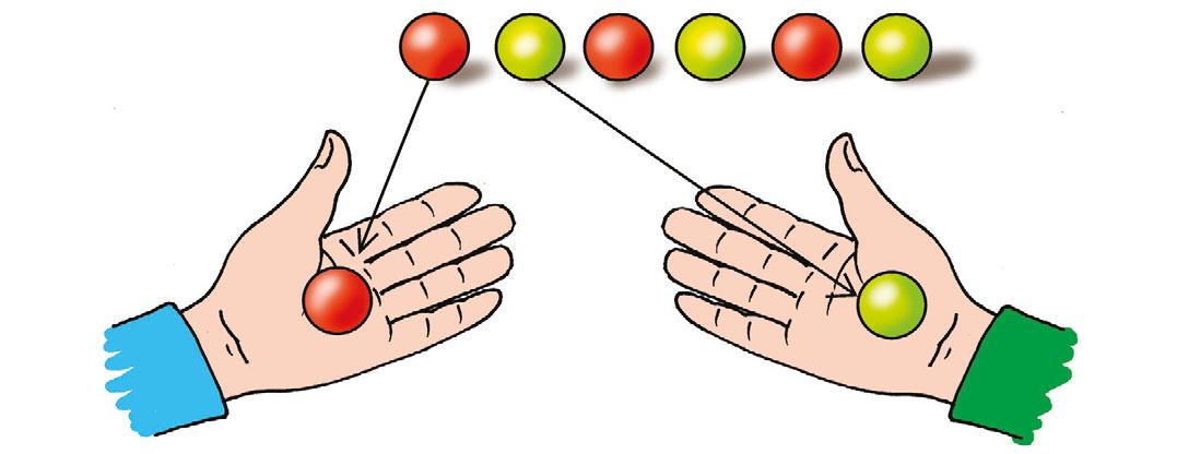 Rozděluj po jedné 6 kuliček mezi 2 spolužáky tak, aby měli oba stejně. Kolik kuliček každý dostane? Zahraj si úlohu s ostatními.