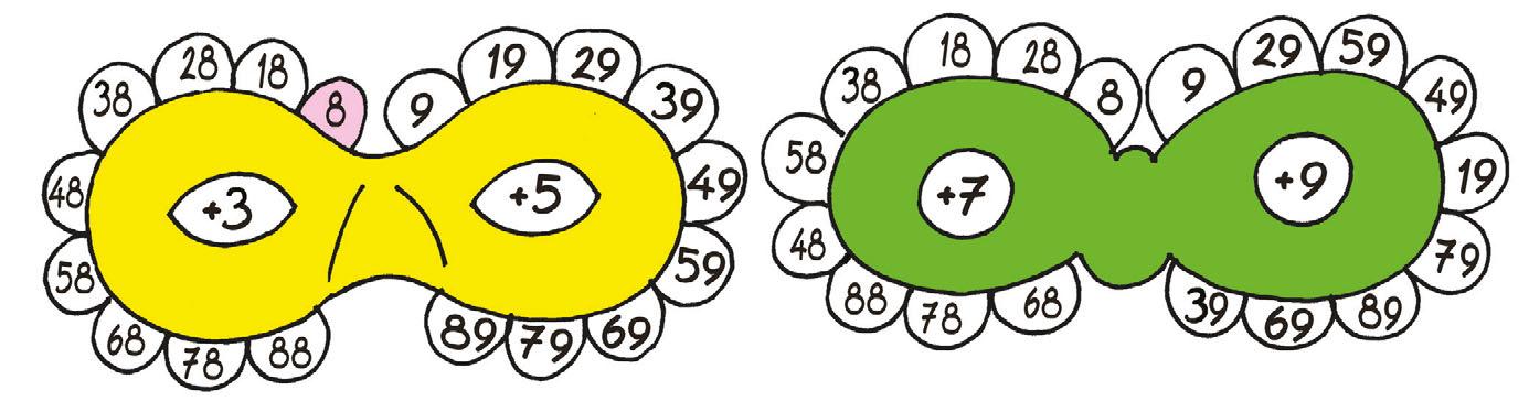 a) Tvoř se spolužáky příklady (8 + 3, 18 + 3, ...). Počítej zpaměti. Políčko s již použitým číslem si můžeš vybarvit.