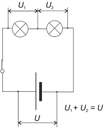 Mezi r znými zapojeními spot ebi lze nalézt dva druhy základního zapojení. Zapojení spot ebi podle obrázku 13 se nazývá sériové zapojení. Takový elektrický obvod není rozv tvený, proto všemi jeho ástmi prochází stejn velký proud. Sou et nap tí na jednotlivých spot ebi ích je roven nap tí zdroje: