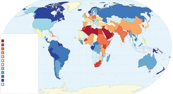 Podle mapky na protější straně vyhledejte oblasti, které trpí značným nedostatkem vody. Vysvětlete příčiny.