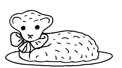 1 Podle předlohy na čtvrtku nakresli a poté vybarvi 2 ouška, 2 tlapky, 1 oválný čumáček a 2 oči (pokud nemáš nalepovací plastová očka).