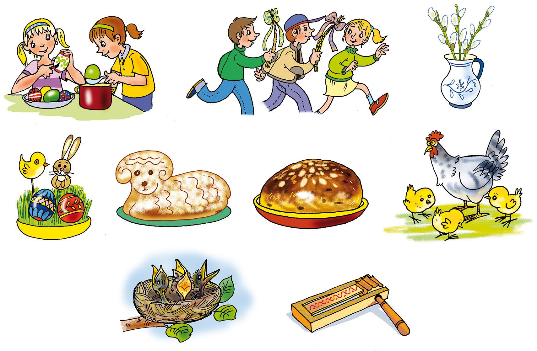 1. Podle obrázků vyprávěj, které velikonoční zvyky znáš a které z nich doma dodržuješ. Přemýšlej, co se na jaře (o Velikonocích) děje v přírodě (rodí se mláďata). 2. Vybarvi si předlohy vzorů na vajíčka, které pak můžeš použít při barvení velikonočních vajíček.