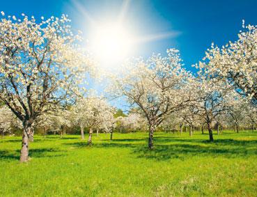 V ovocném sadu nejdřív rozkvetou meruňky, pak třešně a višně. Nakonec rozkvetou švestky, jabloně a hrušně.