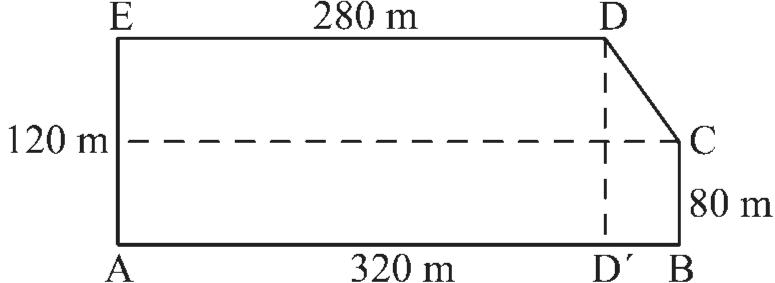5. Zemědělský pozemek na obrázku byl převzat z katastrální mapy obce Sloveč V minulém roce byl oset žitem. Tento pozemek má tvar pětiúhelníku ABCDE, pro který platí: AB || DE, AE || BC, |∢EAB| = |∢ABC| = 90°, |AB| = 320 m, |AE| = 120 m, |BC| = 80 m, |DE| = 280 m. Na 1 ha tohoto pozemku se urodilo průměrně 2,6 t žita. Kolik tun mouky bylo možné z celkové sklizně žita z tohoto pozemku namlet, víteli, že žitná mouka tvoří 85 % jeho hmotnosti?