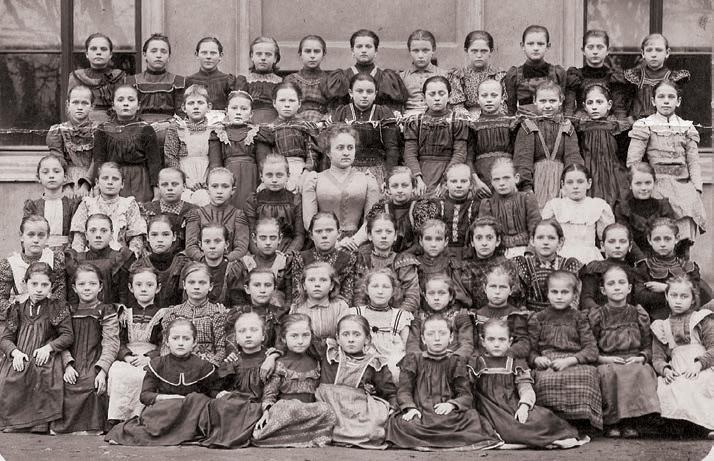 Na fotografii vidíte první třídu dívčí školy z konce 19. století. Všimněte si počtu dětí ve třídě ve srovnání s dneškem.