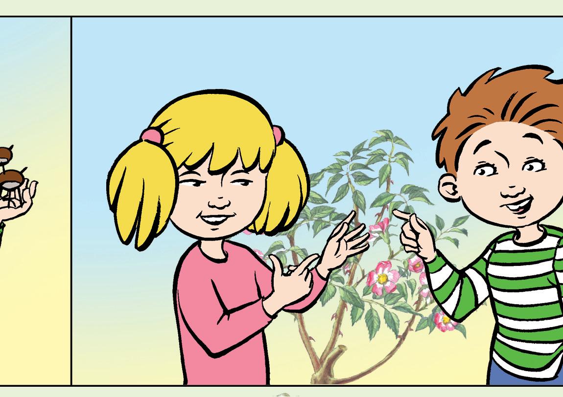 Na to, aby ste všetkému rozumeli, máte dvoch kamarátov – Adama a Janku. Obaja sú prváci ako vy a obaja s vami budú objavovať tajomstvá prírody, budú s vami hľadať cestu do školy a riešiť úlohy, ktoré v učebnici máte. Ich rozhovory sú spracované ako komiks. Máte radi komiksy? Ak áno, možno nejaké aj sami vymyslíte a doplníte príbehy s vašimi novými kamarátmi.
