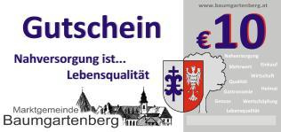 Die Gutscheine sind am Marktgemeindeamt Baumgartenberg erhältlich und können in den aufgelisteten Baumgartenberger Betrieben (Beilage zu Gutscheinen) eingelöst werden. (Die „alten“ Gutscheine können nach wie vor eingelöst werden.)