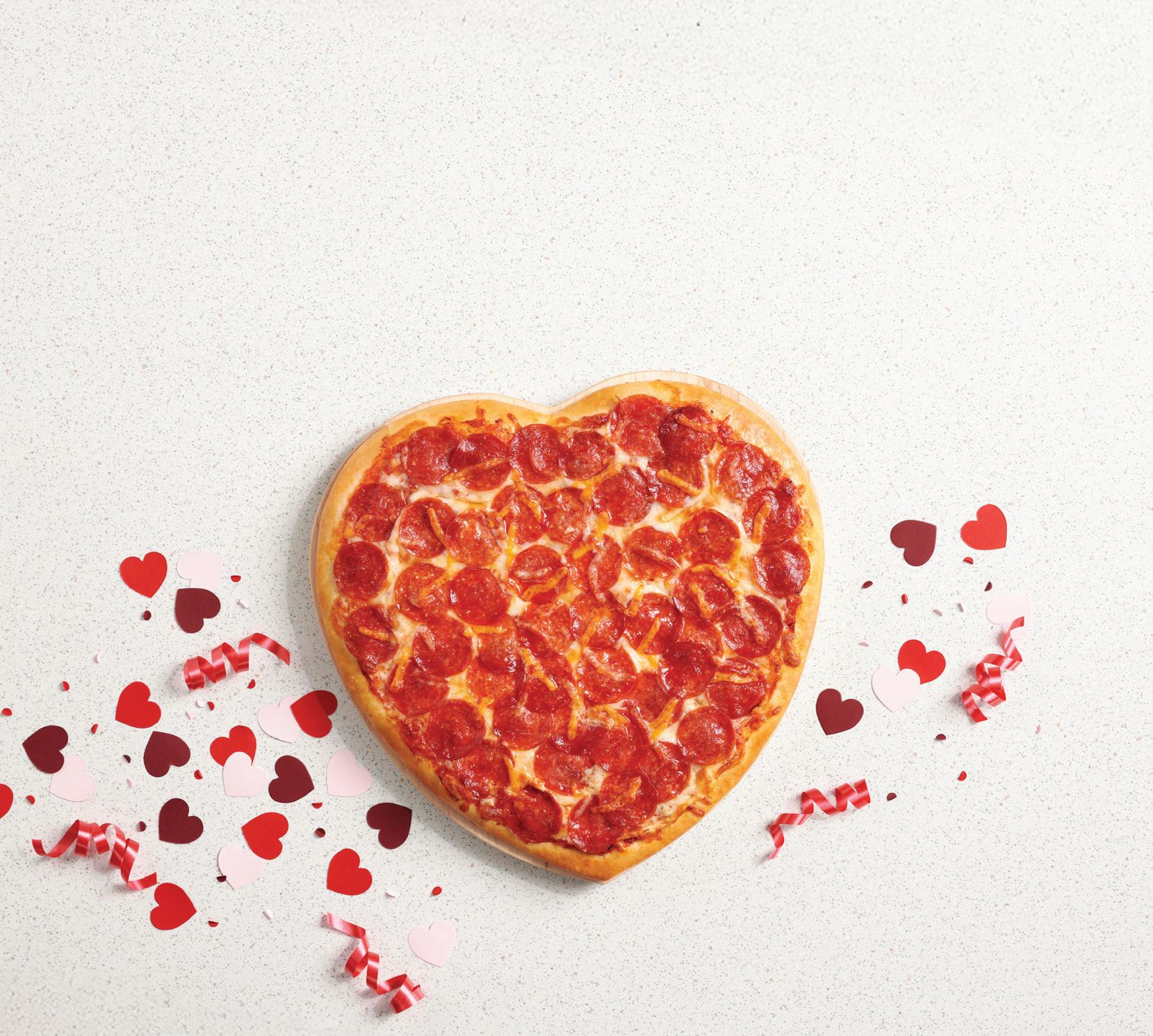 Available 2/1 – 2/14/26 at participating locations. Offer valid for Large HeartBaker® pizza on original crust only. No substitutions or additional toppings. Not valid with any other offers, specials, promotions or discounts.