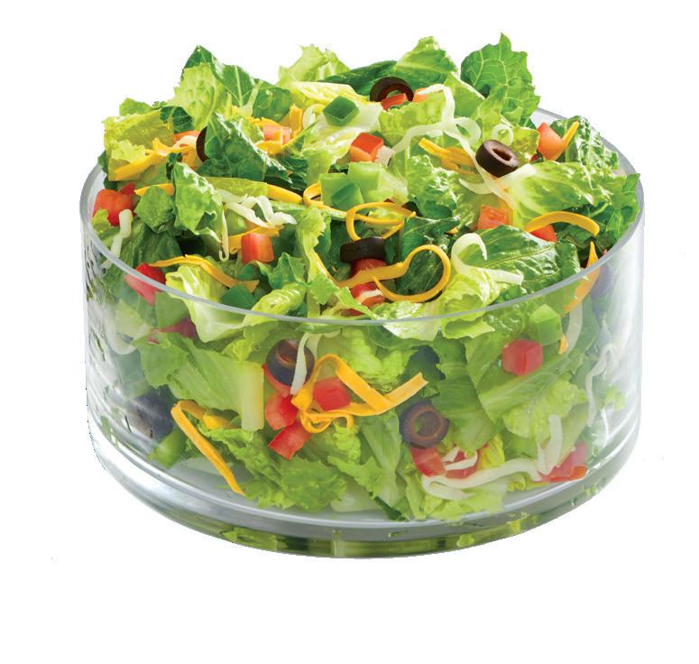 Romaine, Green Peppers, Tomatoes, Black Olives, Mozzarella and Cheddar