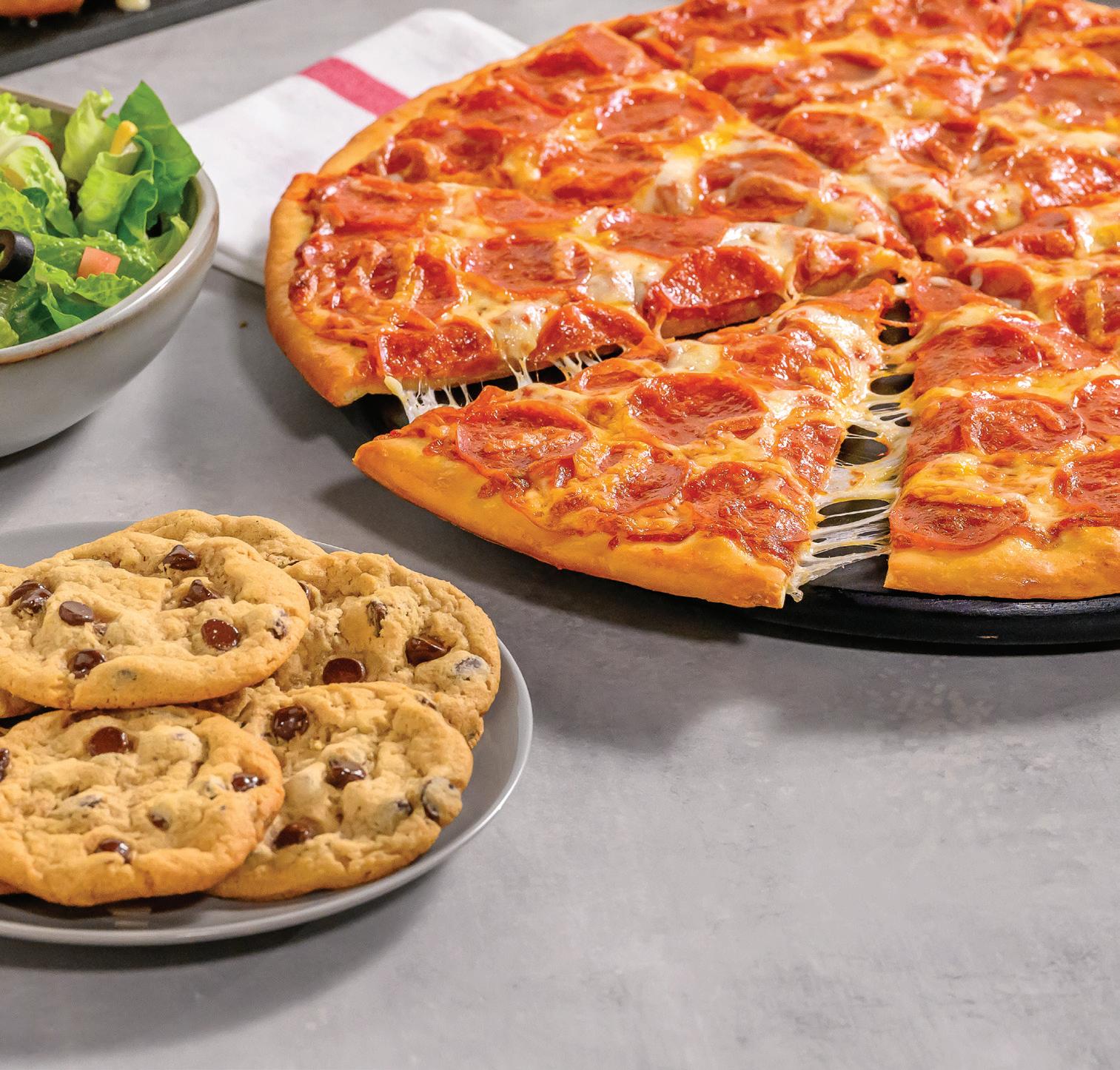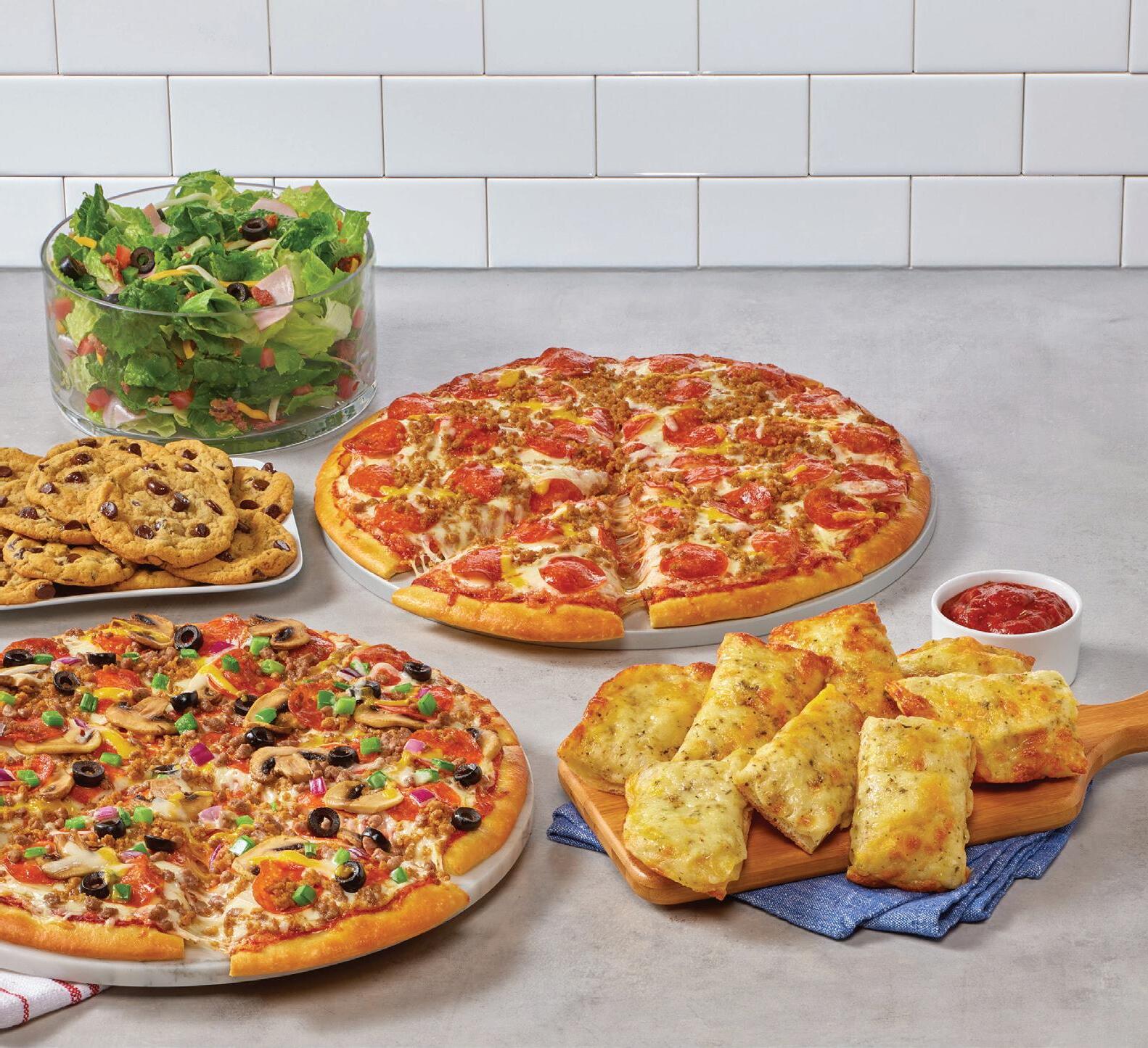 Recipe or up to 5 toppings on Thin or Original crust and choose from Cheesy Bread, Cinnamon Wheel, or Salad