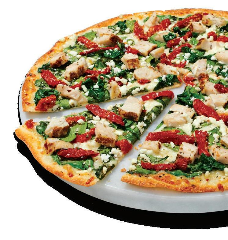 Chicken, Zucchini, Mixed Onions, Crushed Red Peppers, Mozzarella, Sweet Chili Sauce on Thin Crust