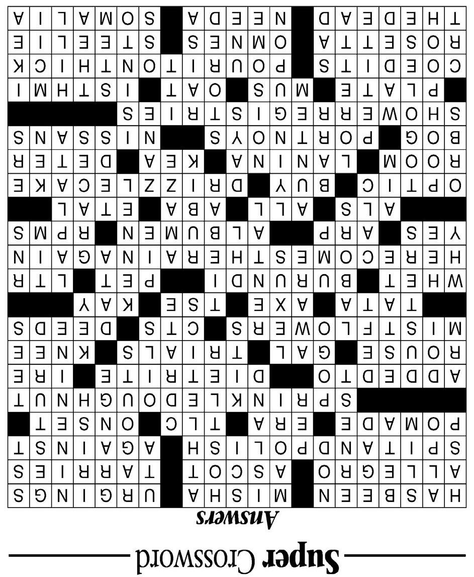 A Free Weekly for Spokane To advertise in pinch Call (509) 459-5005 W. Stacey Cowles President & Publisher Copyright 2024 Cowles Publishing Company All rights reserved. No part of this publication may be reproduced in any form by any means, electronic or mechanical (including photocopying, recording or information storage and retrieval) without permission in writing from the publisher. Copying for purposes other than personal use or internal reference, or reproduction of articles or columns not owned by pinch (including comic strips and syndicated columns) without written permission from pinch, or the copyright owner is expressly forbidden. The w ord“pinch” and the proprietary typeface and design in which it appears at the top of Page One of this weekly is a registered trademark of Cowles Publishing Company. The pinch trademark may not be reproduced or used for any purpose without the express written permission of pinch. Permission to reproduce pinch articles or other intellectual property may require payment of fee. Address all inquiries and requests concerning use or reproduction of pinch’s copyrighted or trademarked material to: Rights and Permissions, pinch, P.O Box 2160, Spokane, WA 99210. Sudoku Answers