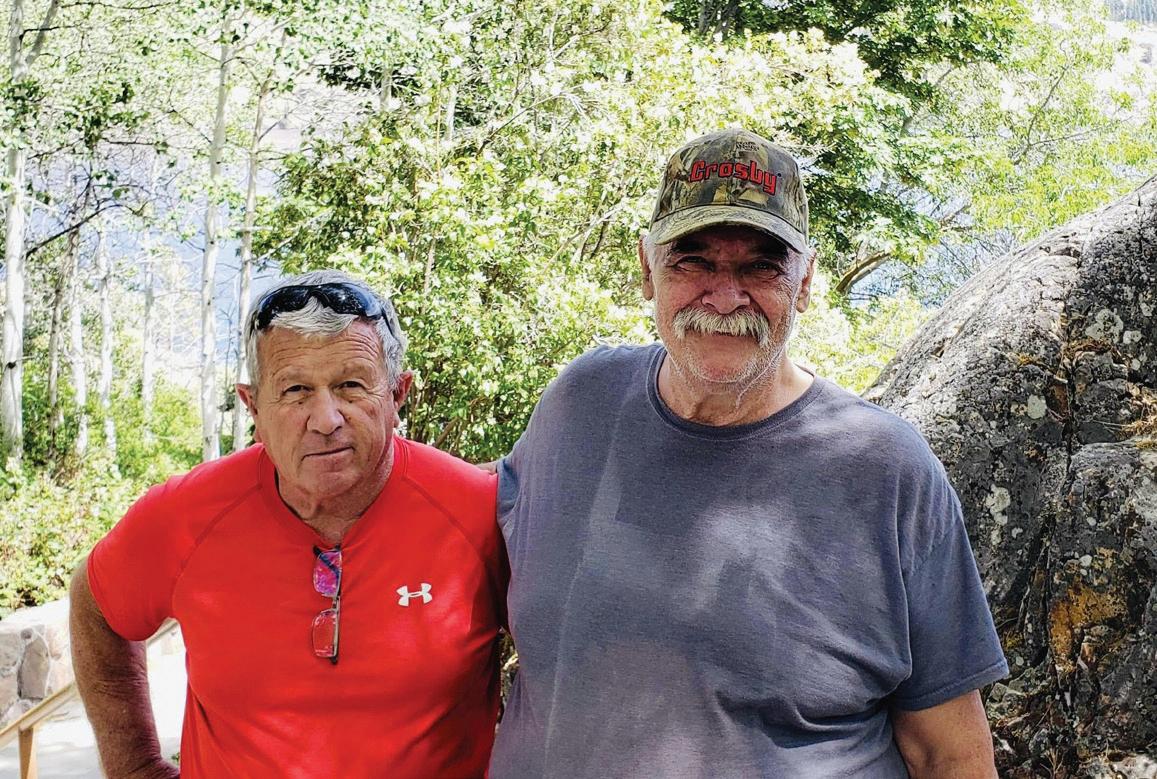 Chuck Fenton, left, who served as a helicopter door gunner in Vietnam, and his friend and crew chief, James Bock.
