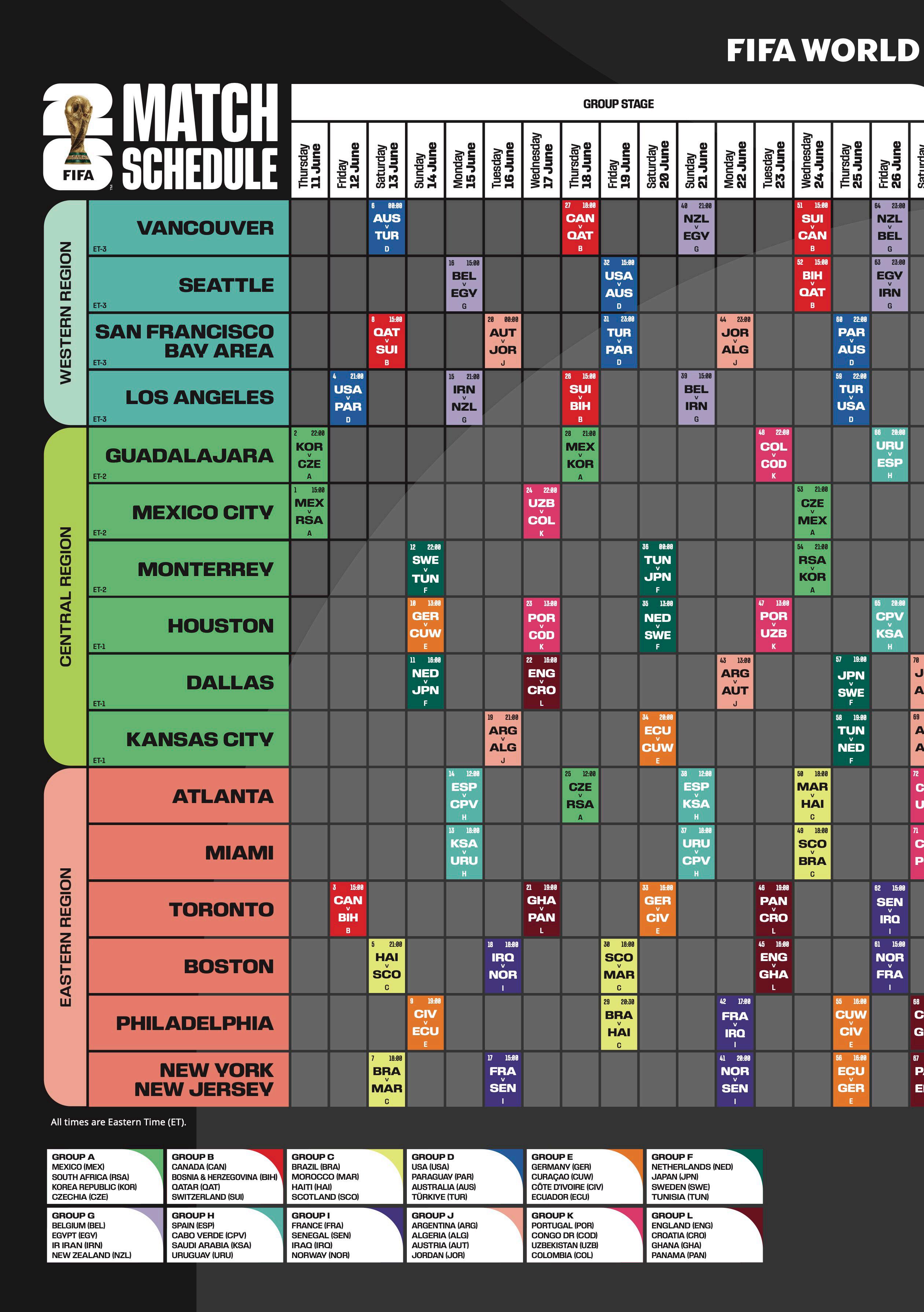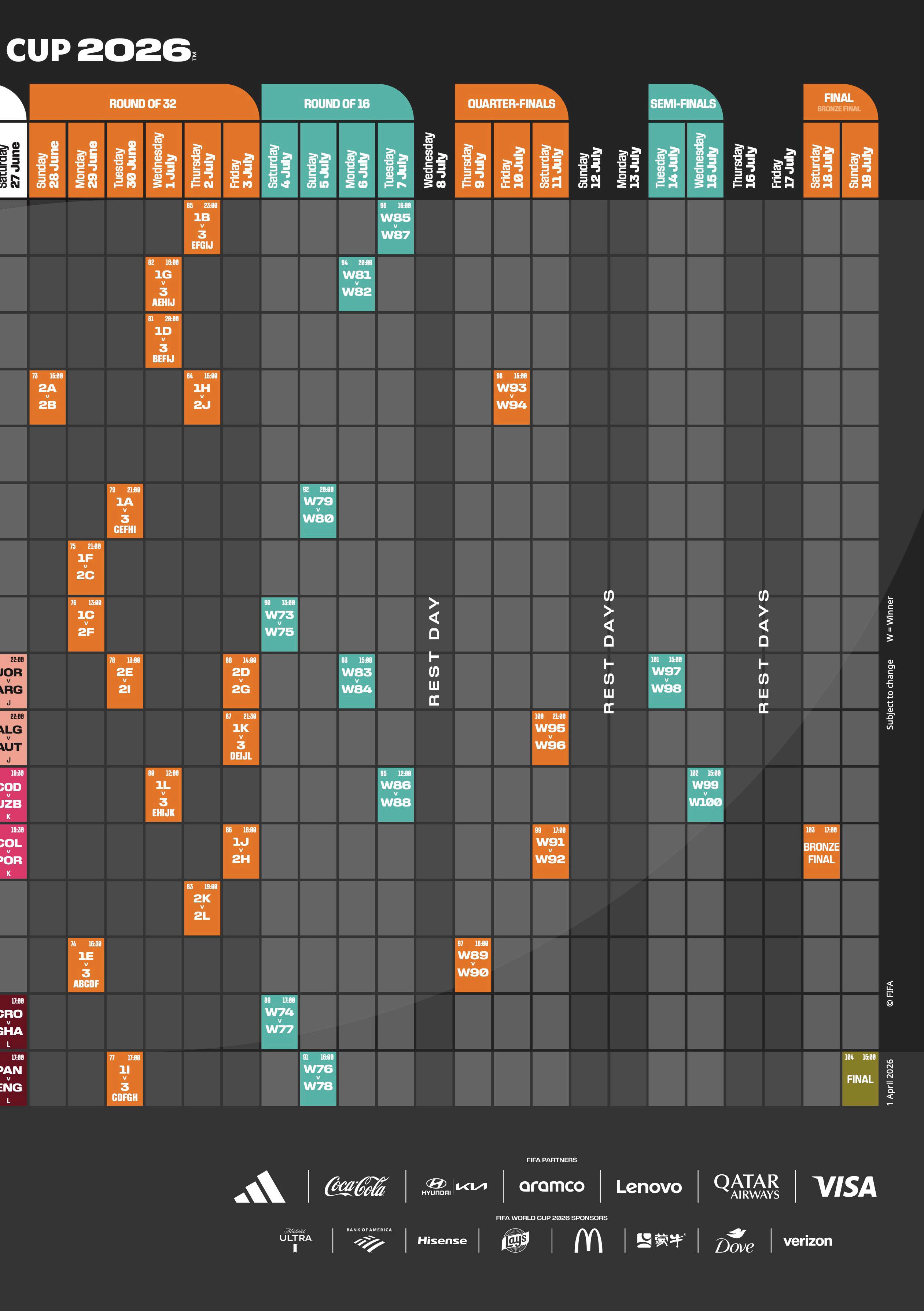 Teams compete in the group stage and opening knockout rounds of world football’s biggest tournament. 06