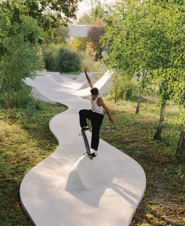 Foto: © Maxime Verret In un paesaggio a metà tra industria e vegetazione, lo skatepark Continua, progetto dello studio MBL Architectes di Parigi, è stato concepito per immergersi nello scenario di un ex-mulino industriale. Con il suo colore chiaro si staglia nel verde del bosco accompagnando la pratica di tutte le tipologie di sport su rotelle. Per 10 anni MBL Architectes hanno lavorato alla progressiva trasformazione di un ex mulino industriale a Boissy-le-Châtel, in Francia, in un luogo d'arte contemporanea per la Galleria Continua. Iniziato nel 2013, il progetto mira a mantenere e preservare il sito industriale; resti di costruzioni cadute, sottolineati dalla presenza di piante e dallo sviluppo di specie selvatiche endemiche, si fondono e crescono accanto agli edifici industriali. Quello di Skatepark Continua è un progetto che segue una ricerca condotta sugli spazi della cultura dello skate, che ha aiutato a capire il ruolo che uno skatepark può rivestire nello sviluppo di un territorio. A differenza di quello che si potrebbe supporre riguardo a una struttura sportiva così specializzata, lo skatepark può favorire l'aggregazione di una popolazione molto diversificata. Punti d'incontro per bambini e genitori, playground adatti alla pratica di ogni sorta di sport sulle ruote e spazi per gli allenamenti di skateboarding, gli skatepark costruiscono comunità temporanee. La loro capacità di generare una forma di "vita pubblica" ha reso così rilevante la costruzione dello skatepark in questo luogo. Lo skatepark Continua di MBL Architectes ha portato un nuovo pubblico nei locali della galleria, non sempre familiare con l'arte contemporanea, e ha offerto uno spazio di aggregazione e comunitario. Lo skatepark esplora le possibilità del cemento bagnato; sul sito, i telai metallici sono stati assemblati e saldati. Il calcestruzzo fresco è stato spruzzato direttamente sul metallo, poi steso e lisciato nelle forme desiderate prima che facesse presa. La fabbricazione dello Skatepark Continua è in gran parte dovuta alla destrezza dei muratori-skaters che sono stati incaricati di dargli forma: il cantiere è stato condotto come se fosse una performance, che ha celebrato l'incontro tra un progetto e un luogo. Ideando il progetto è emerso il desiderio di esplorare le caratteristiche dei primi skatepark, negli anni Settanta: il progetto si basa sulle premesse empiriche dell'architettura non standard. Concepito come una striscia continua, senza delimitazioni, lo skatepark è una struttura nel paesaggio: si allunga lungo i vecchi binari della ferrovia, immerso negli alberi e nei cespugli. Connette gli edifici nel territorio esteso, mentre le linee curve di cemento grezzo delinea le ombre degli alberi. Senza preconcetti, la forma dello skatepark si adatta alle specificità del suolo e della vegetazione esistente.