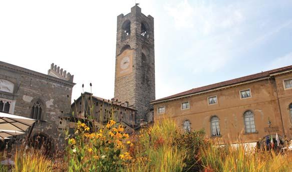 In alto e sotto a sinistra, Piazza Vecchia con l’installazione di Nigel Dunnet. Nelle altre immagini il portico della Biblioteca Angelo Maj. L’edizione del Landscape Festival / i Maestri del Paesaggio organizzata da Arketipos, conclusa domenica 26 settembre, si è svolta intorno a un tema, “From Nature to Nature (a journey in the city of the future)” dove per “city” si intende certamente il contesto urbano ma, in modo più ampio, tutte le città possibili, ogni centro di aggregazione, dai villaggi alle metropoli. L’obiettivo di Landscape Festival è stato quello di “immaginare ambienti più naturali possibili, al contempo misurati e ideati con cura, ponderati nei ritmi e nei colori, nell’alternarsi armonico delle essenze e delle forme, gradevoli nell’interazione e contemplazione”, come spiega la presentazione ufficiale. Un tema che, come ogni anno, viene reso tangibile al grande pubblico soprattutto attraverso la sistemazione “paesaggistica” della Piazza Vecchia. Nigel Dunnett, paesaggista inglese, classe ’62, con Gren Square 2021 ha realizzato una “prateria” di piante erbacee dalle fioriture più diverse - adatte alla stagione settembrina - posate sopra la storica pavimentazione in cotto. A onore di cronaca va detto che per il visitatore della Città Alta l’esperienza del Landscape Festival - al di fuori della Piazza Vecchia - si confonde con le innumerevoli altre iniziative che Bergamo contemporaneamente offre (mostre, esposizioni, installazioni museali), senza contare il preponderante stimolo delle offerte gastronomiche su cui conta il sempre affollatissimo passeggio lungo l’asse che va dalla Funicolare alla Cittadella. Viceversa, per gli addetti ai lavori vanno ricordati i tradizionali allestimenti “green” degli sponsor, fra cui quello studiato da Zenucchi con l’architetto Massimo Castagna, che trasforma il portico della Biblioteca Angelo Maj in un bosco dove il visitatore è invitato a rilassarsi (con la collaborazione, fra gli altri, di Sit-in Sport). Sono state poi proposte alcune mostre fotografiche, installazione site specific come quella realizzata da Roberto Ghezzi nella Sala dei Giuristi, ma anche l’International Meeting, che come ogni anno è uno dei più importanti appuntamenti a livello internazionale aperto ad esperti e appassionati, una giornata di incontri che si è potuta seguire anche come webinar. Fra gli eventi collaterali ricordiamo infine il “Landscape Talk” che si è tenuto la mattina di venerdì 24 a cura del leader partner della manifestazione Mapei, che da diversi anni ha dedicato una gamma di linee ampia e trasversale a piazze, centri storici, aree per lo sport, parchi, giardini, waterfront e lungomare, con un’attenzione particolare alla sostenibilità, alla bellezza del risultato, e alla durabilità. (B.G.)