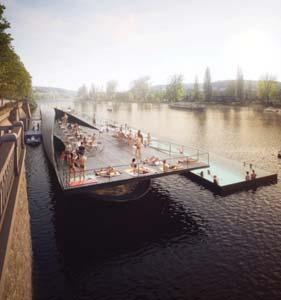 La piscina galleggiante di Praga