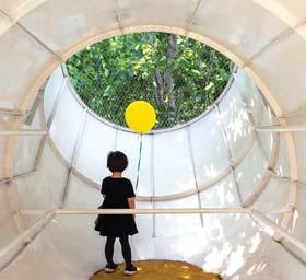 l tubi, disposti come scale e ponti di collegamento, con diametri diversi e differenti altezze diventano strumenti di confronto con il proprio corpo. Il tetto, che presenta un punto alto per avere una visione d’insieme, pone ai bambini la scelta di abbracciare percorsi differenti, tra reti e tappeti elastici.