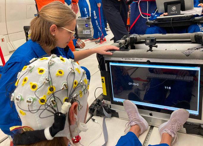 Seit vielen Jahren erforschen Wissenschaftler*in nen des Instituts für Bewegungs- und Neurowissen schaft die Auswirkungen von Schwerelosigkeit und Hypergravitation auf den menschlichen Körper. Der zeit wird unter dem Projekttitel „Shades of Gravity“ der Einfluss von Schwerelosigkeit sowie der Mondund Marsgravitation auf die Gehirnaktivität und die kognitive Leistungsfähigkeit untersucht. Aktuelle Pläne nationaler und internationaler Raumfahrtbe hörden, sich in den kommenden Jahren auf die Erfor schung von Mond und Mars zu konzentrieren, nahmen die Wissenschaftler*innen zum Anlass, die Forschung im Bereich der partiellen Gravitation zu intensivieren.