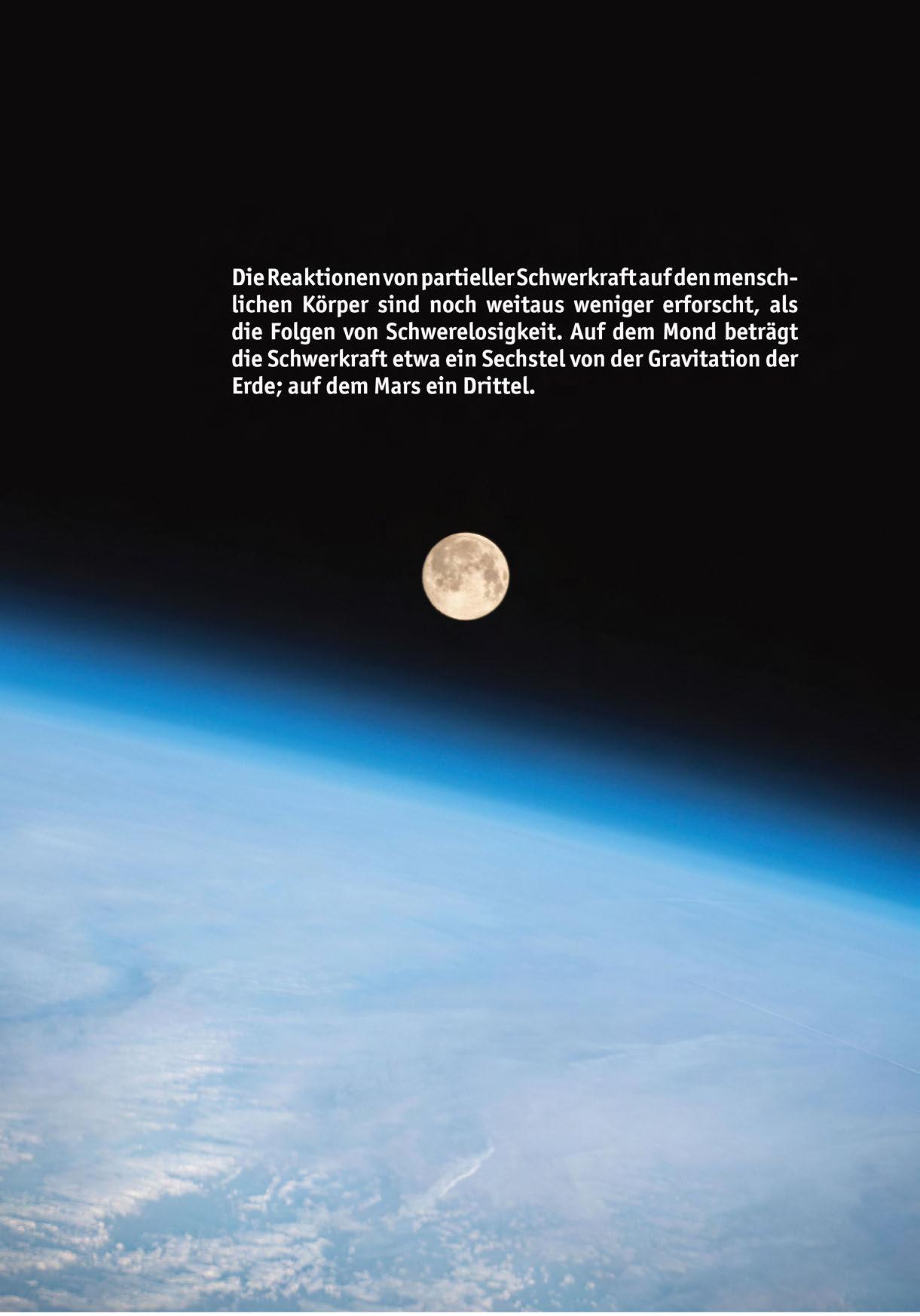 Was wir daraus lernen Rückblickend auf die zuvor aufgestellten Hypothesen und der berichteten Ergebnisse ist die Annahme eines Schwellenwertes möglich. Die Lokalisation dieser Schwelle wird zwischen Mond- und Marsgravitation verortet, da hier signifikante Unterschiede in der Gehirnaktivi tät gefunden wurden, aber nicht zwischen Mondgravitation und Schwerelosigkeit. Die nicht vorhandenen Unterschiede in Fehlerrate und Reaktionszeit in Kombination mit gleichzeitig geringerer elektrokortikaler Aktivität zeigt eine Verhaltensleistung, die als positiver Effekt für Astronauten auf kommenden Missionen bezeichnet werden könnte. Das hier gewonnene tiefere Verständnis der kortikalen Veränderungen kann in Zukunft die Rehabilitationsstrate gien für neurologische Patienten verbessern. Insbesondere bettlägerige Patienten werden von den im Weltraum gewonnenen Erkenntnissen profitieren. Um das Gesamtbild des Ein flusses verschiedener Gravitationsniveaus verstehen zu können, sollte das Zusammenspiel verschiedener Bereiche des menschlichen Körpers unter Extrembedingungen in den Fokus der Wissenschaft rücken. Ein erster Schritt in diese Richtung ist das Projekt ‚SpaceBike‘, welches die Kenntnisse über den Zusammenhang zwischen mechanischen Komponenten der Muskelphysiologie und ihrer neuromuskulären Steuerung vertieft. Langfristig werden die hierbei erzielten Ergebnisse in die klinische Anwendung überführt werden können und zur Weiterentwicklung von Neurorehabilitationsstrategien für Patienten mit traumatischen oder degenerativen Hirnerkrankungen beitragen.