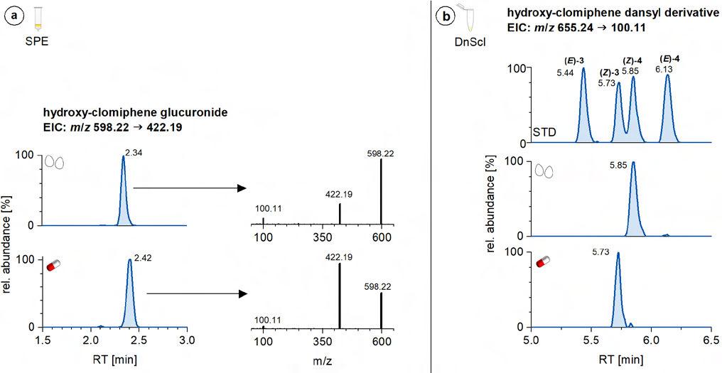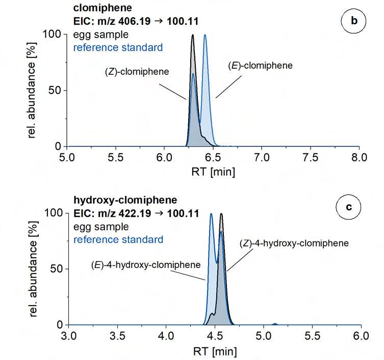 Um Athlet*innen vor dieser unbeabsichtigten Ein nahme eines Dopingmittels zu schützen, haben die Mitarbeiter*innen eine Methode entwickelt, mit der unterschieden werden kann, ob Clomifen in Form der Reinsubstanz in Mikrodosierung aufgenommen wurde oder über Eier, die Clomifen-Rückstände enthalten.