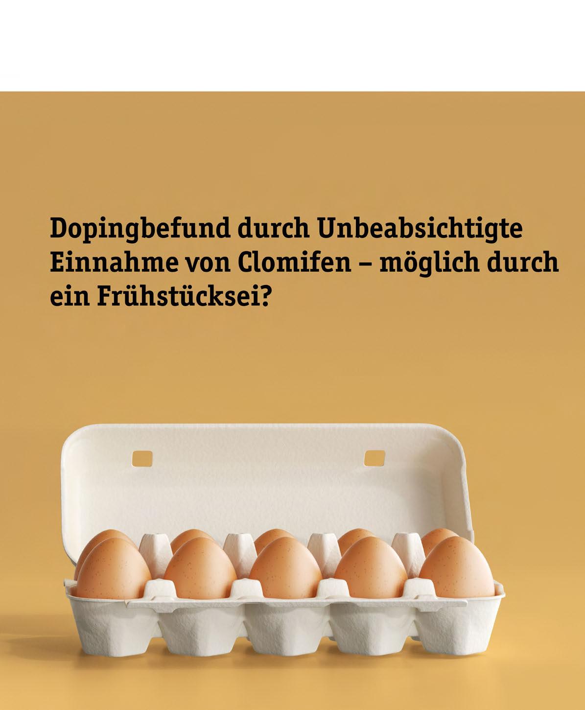 Positiver Dopingbefund durch den Verzehr ei nes Frühstückseis? Dass dies möglich ist, haben Wissenschaftler*innen des Instituts für Biochemie herausgefunden. Clomifen heißt die Substanz, die durch „verunreinigte“ Eier in den Körper gelangt und zu einem positiven Dopingbefund führen kann.