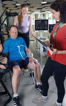 krafttraining, dynamische Bewegungen an Geräten wie der Beinpresse sowie ein gezieltes Atemmuskeltraining. Jede Übung wird sowohl in moderater als auch in hoher Intensität durchgeführt. Währenddessen erfassen moderne, nichtinvasive Messmethoden kontinuierlich Blutdruck, Herzfrequenz, Herzminutenvolumen und die Sauerstoffsättigung in Finger und Beinmuskulatur. Erste Ergebnisse werden in den kommenden Monaten erwartet und sollen wertvolle Impulse für eine noch individuellere und effektivere Rehabilitation liefern.