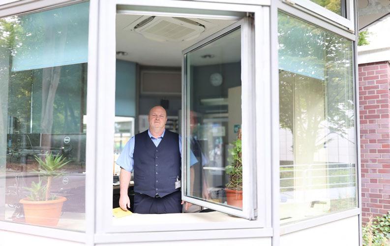 Ralf hat den Durchblick. Der 54-Jährige gehört zum fünfköpfigen Team der Pforte und nimmt uns mit in seine Loge.