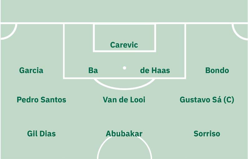 Sporting CP: Rui Silva [GR], Iván Fresneda, Ousmane Diomande, Gonçalo Inácio, Maxi Araújo, Morten Hjulmand [C], Hidemasa Morita (Luís Guilherme, 79’), Geny Catamo (Daniel Bragança, 84’), Pedro Gonçalves (Souleymane Faye, 84’), Francisco Trincão e Luis Suárez. Treinador: Rui Borges. Disciplina: cartão amarelo para Ousmane Diomande (45+3’), Hidemasa Morita (74’), Morten Hjulmand (79’), Luis Suárez (86’) e Maxi Araújo (90+3’).
