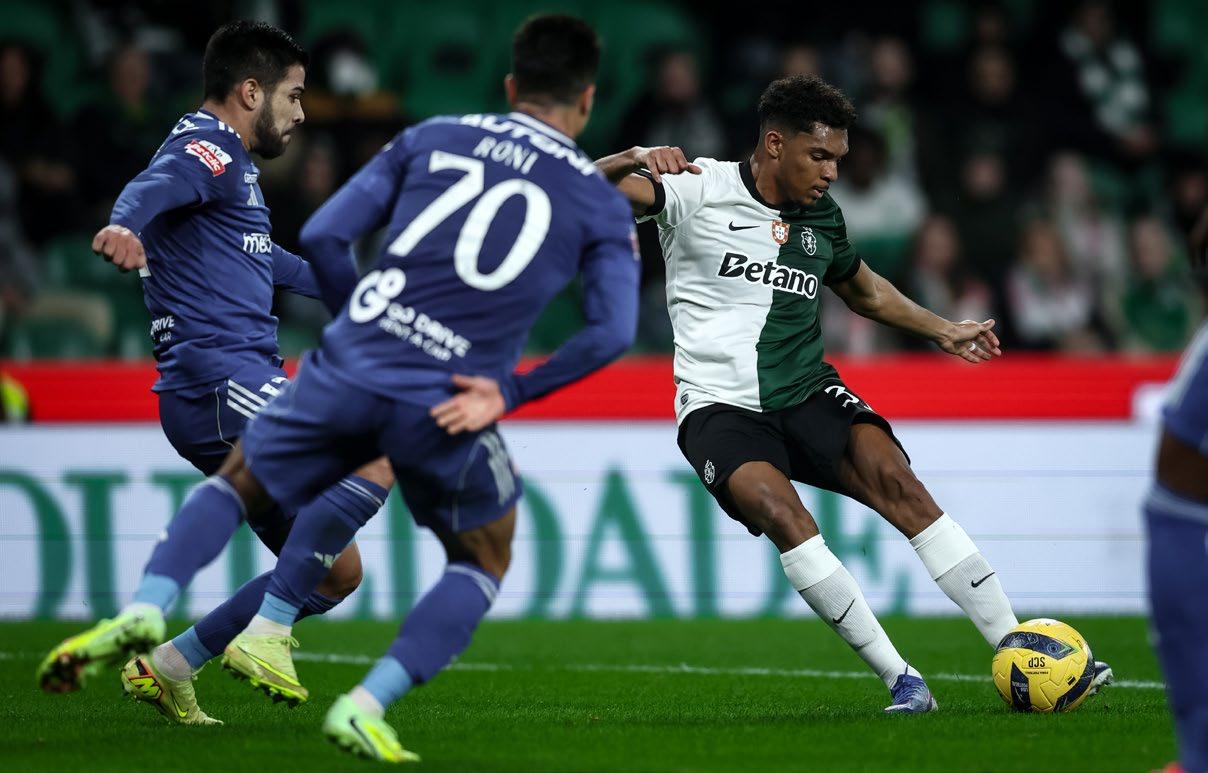 30’, foi muito bem lançado por Pedro Gonçalves antes de tentar dar para Geny Catamo, mas teve força a mais. Na resposta, Alberto Costa tentou a sua sorte de muito longe, mas ficou igualmente longe de ter sucesso.
