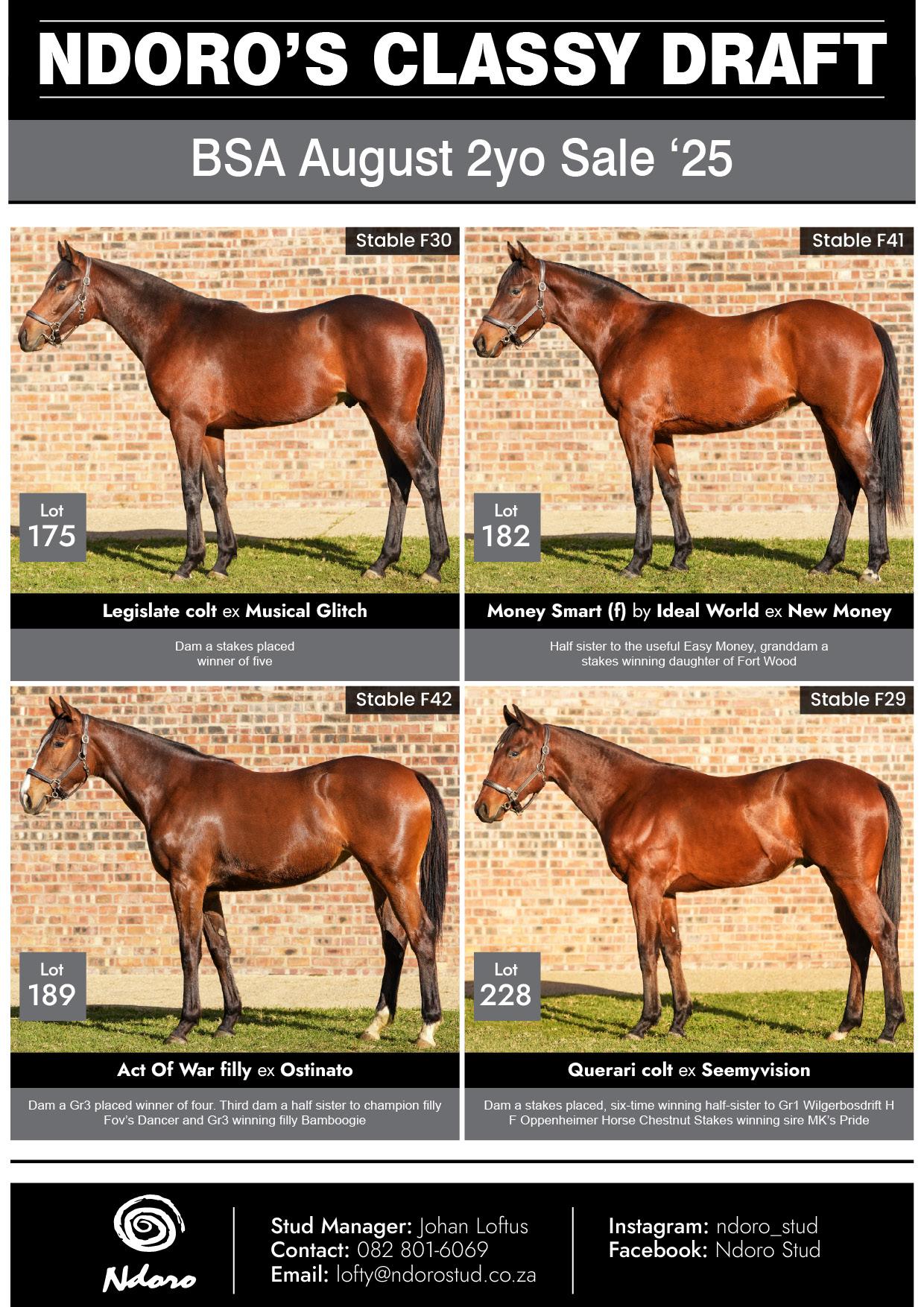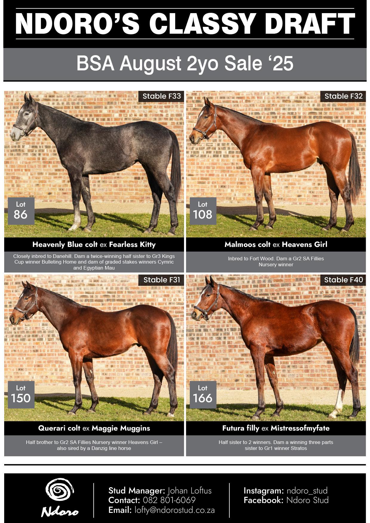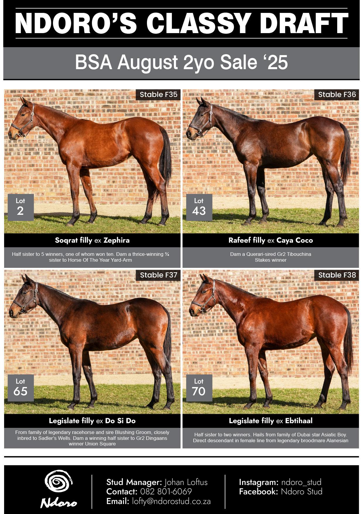 Ndoro’s August Sale draft can be found in Block F at the TBA Complex in Germiston.