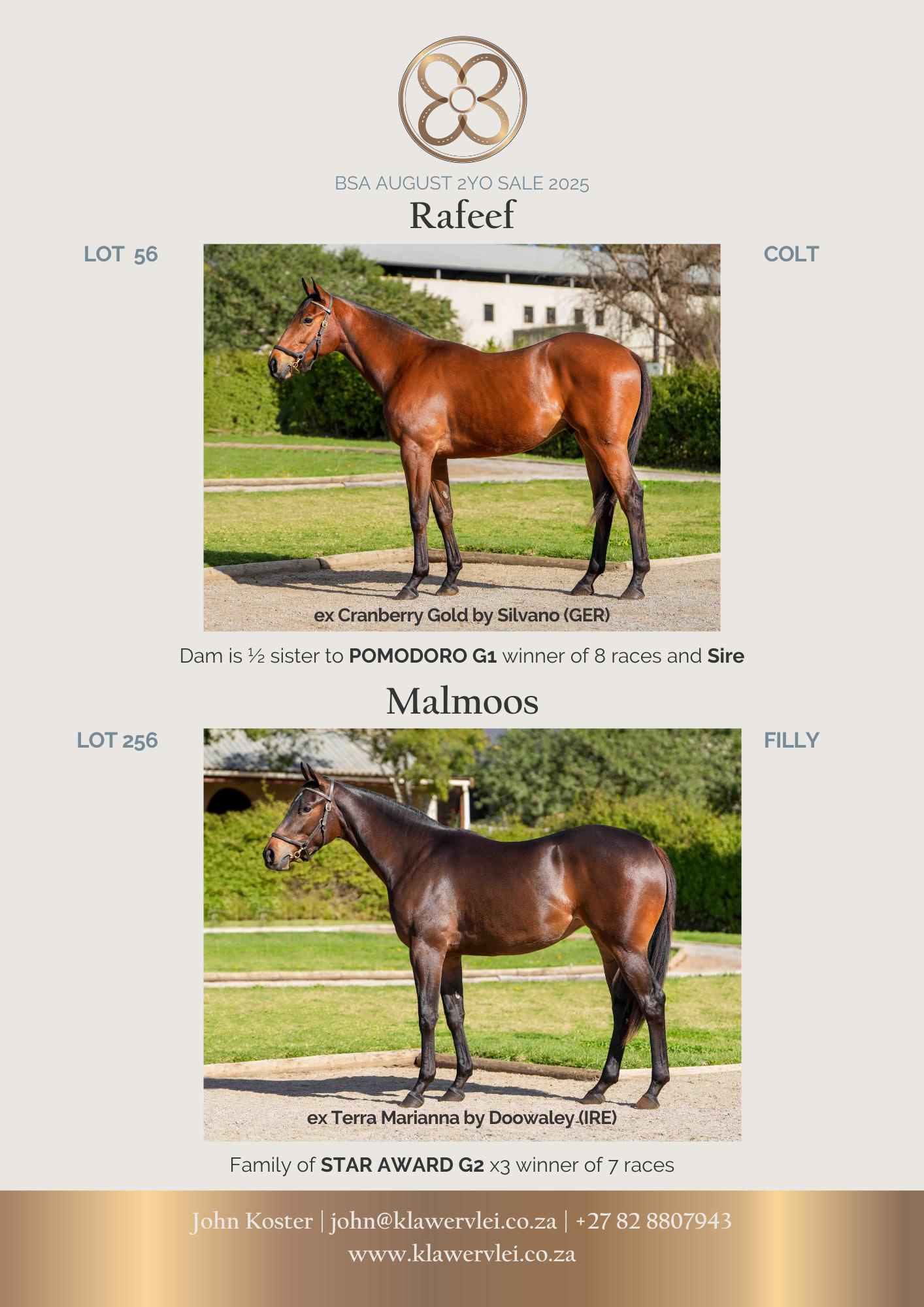 Hendrik will be bringing two-year-olds sired by the likes of Futura, Master Of My Fate, Rafeef and Vercingetorix, with the Winterbach draft including lots from some of the best families in the South African stud book.