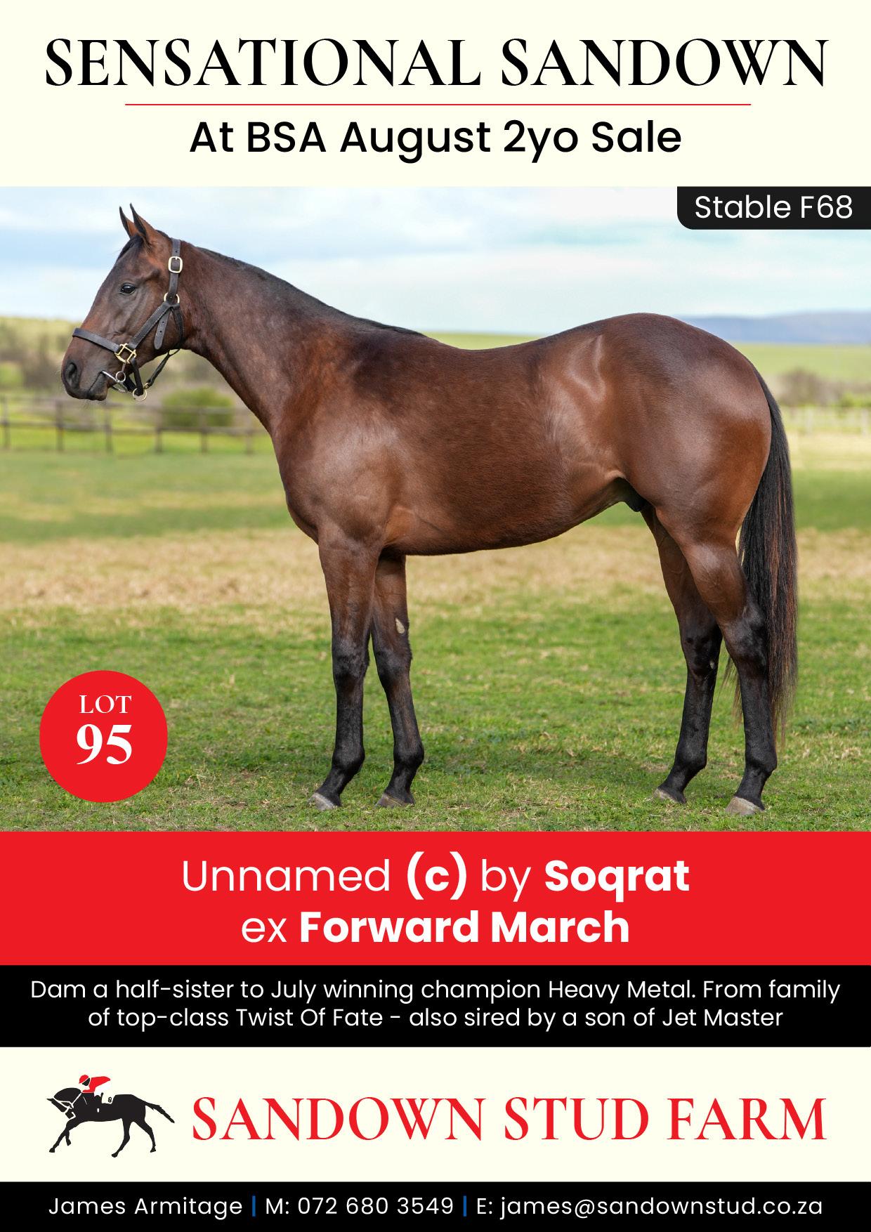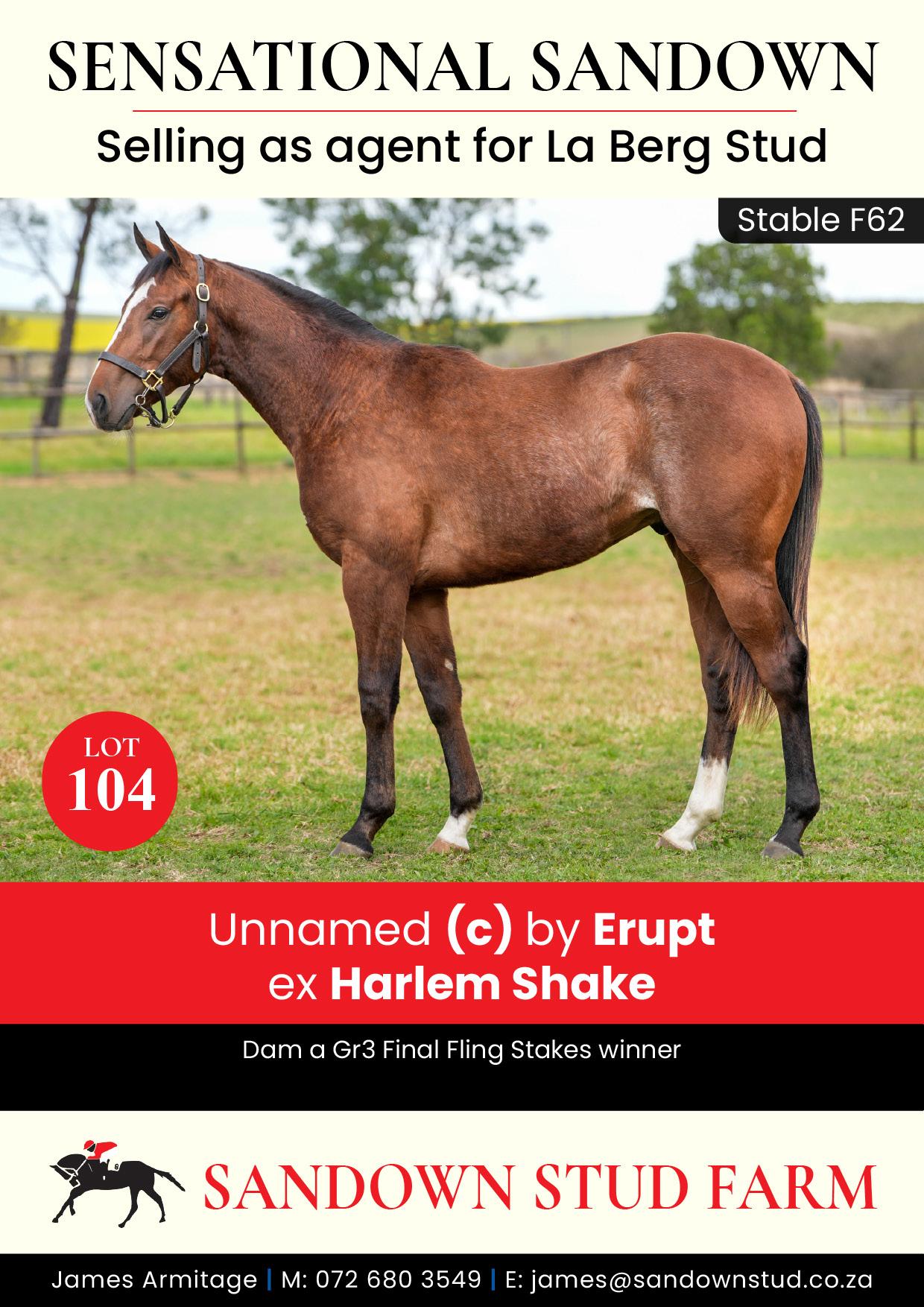 Gauteng Summer Cup winner Flying Carpet, while Clara Lume’ (Lot 257) is a filly whose dam is a full-sister to Listed Java Handicap winner Fulcrum and three-parts sister to champion Captain’s Lover.