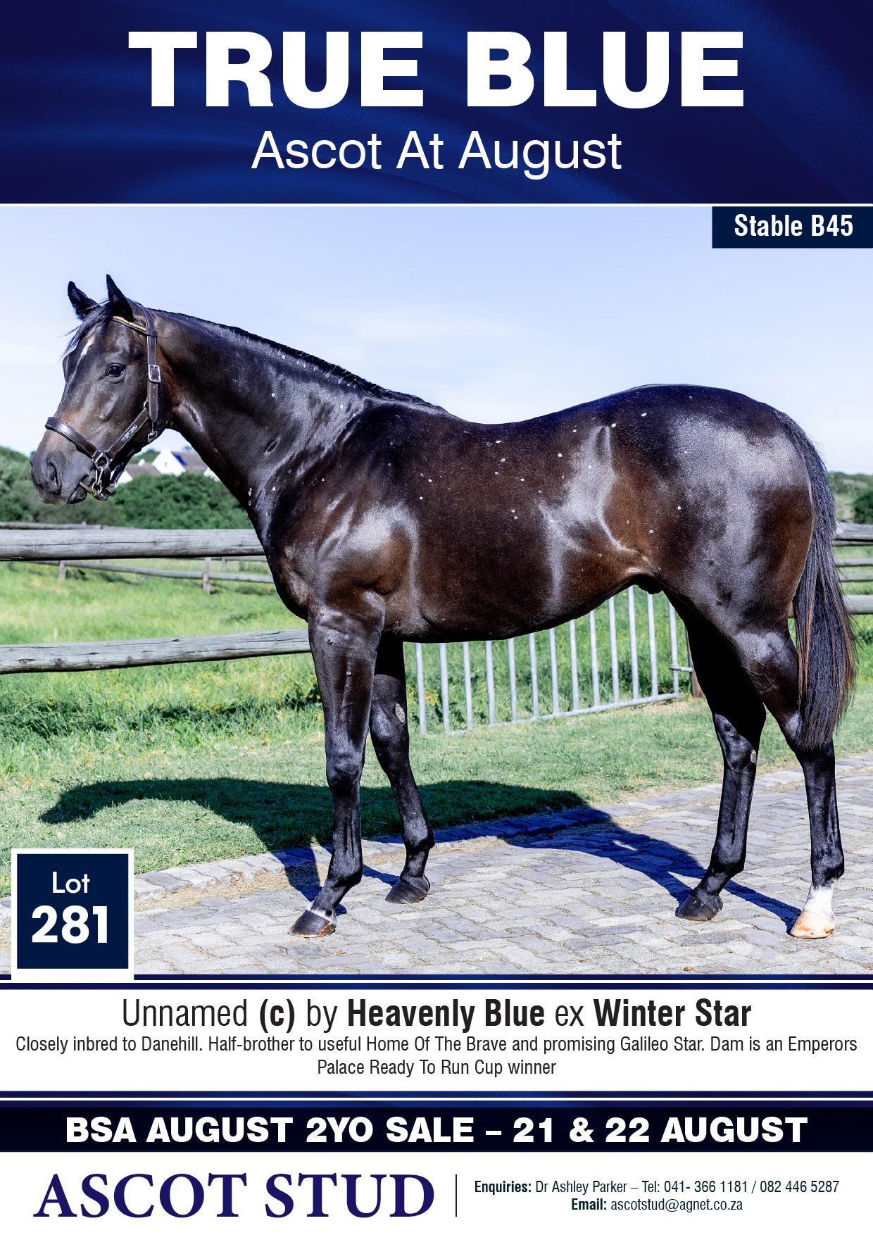 The death of New Predator was a sad loss to the South African breeding industry, and he is represented here by Lot 125, a colt from another fine Blue Sky female line, that of Equus