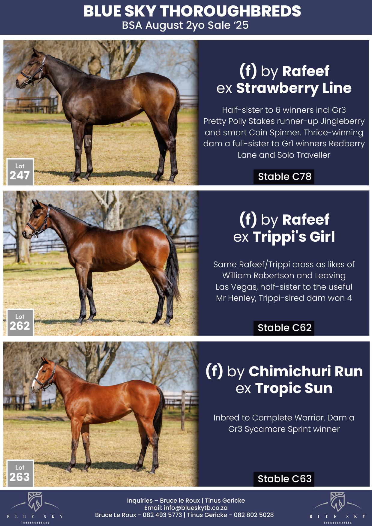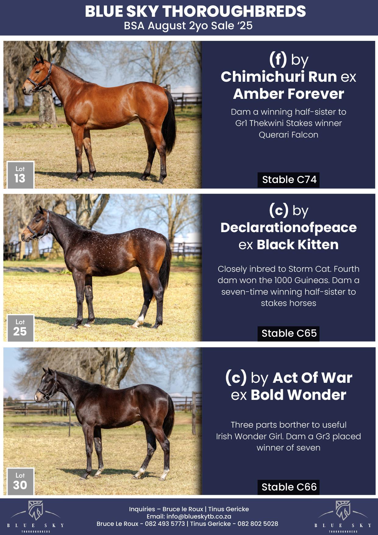 Blue Sky Thoroughbreds’ August draft can be viewed from Block C at the TBA Complex in Germiston.