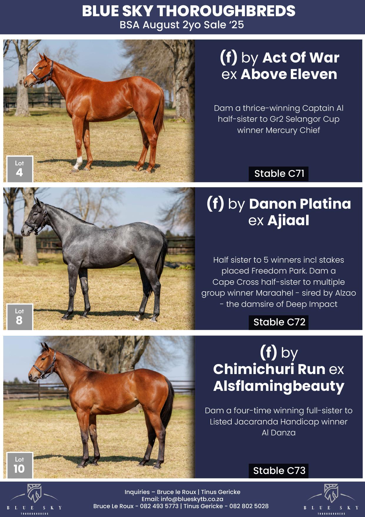 From Act Of War and Legislate, to Chimichuri Run and Danon Platina and the ever popular Rafeef, Blue Sky Thoroughbreds will be offering something for everyone at this year’s August Two Year Old Sale.