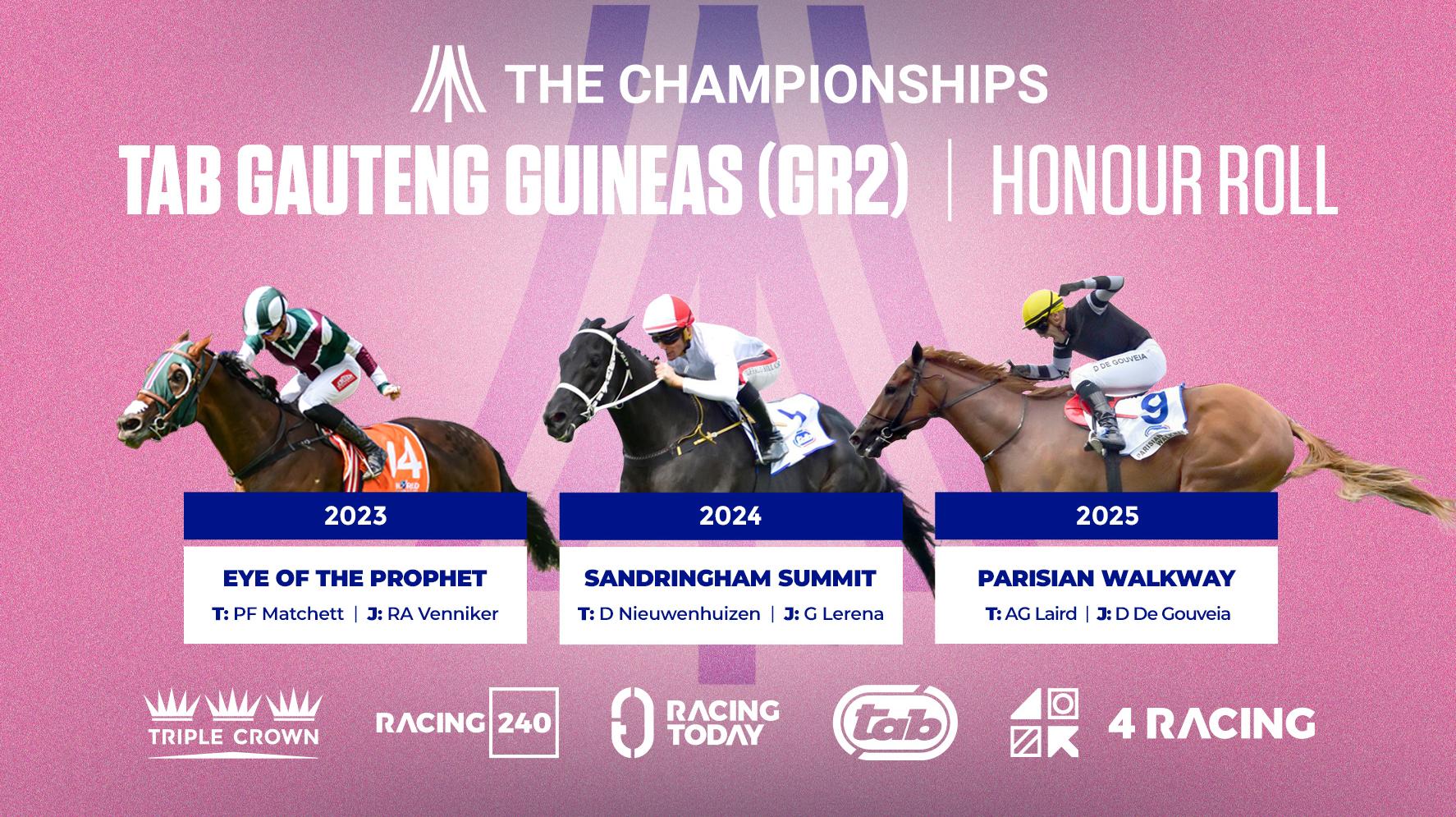4Racing hosts the opening of the The Championships 2026 on Saturday at Turffontein, with final fields for the R1 million TAB Gr2 Gauteng Guineas and the R750 000 Wilgerbosdrift Gr2 Gauteng Guineas, declared on Tuesday.