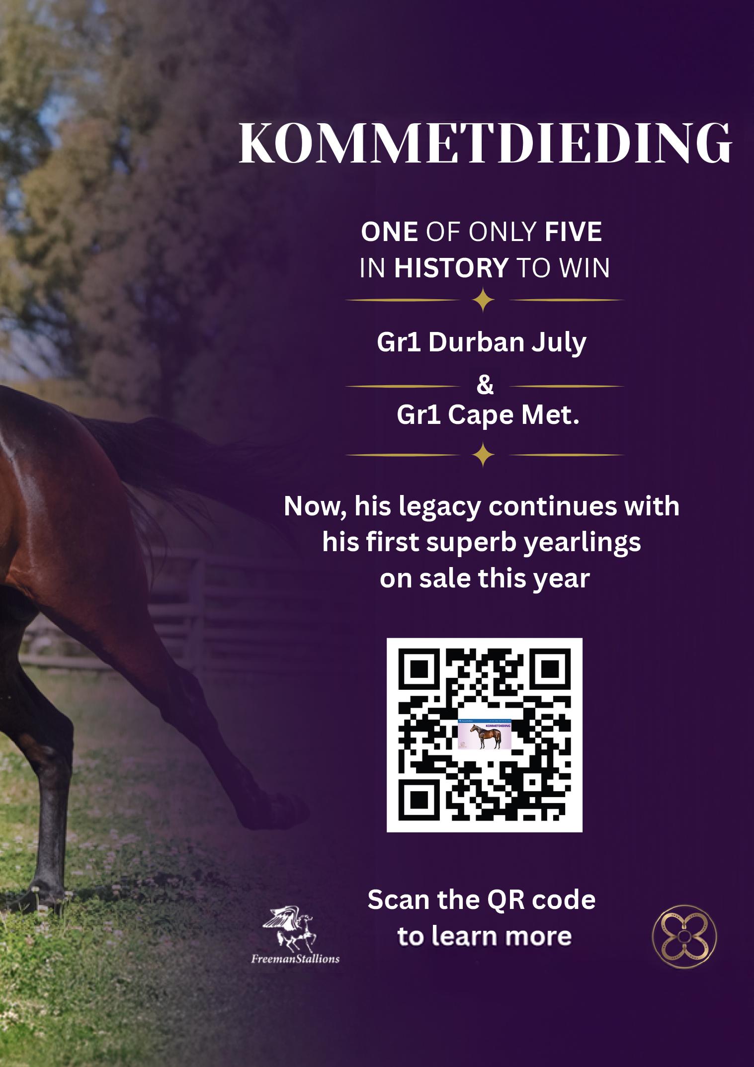 Fast forward to 2024, when Double Superlative scored a splendid win in the World Sports Betting Gr1 Cape Town Met. A paternal half-brother to See It Again, the Twice Over colt likewise ranked amongst the leading three-year-olds of his generation with victory in the Gr1 Cape Guineas and a third in the Gr1 Cape Derby.