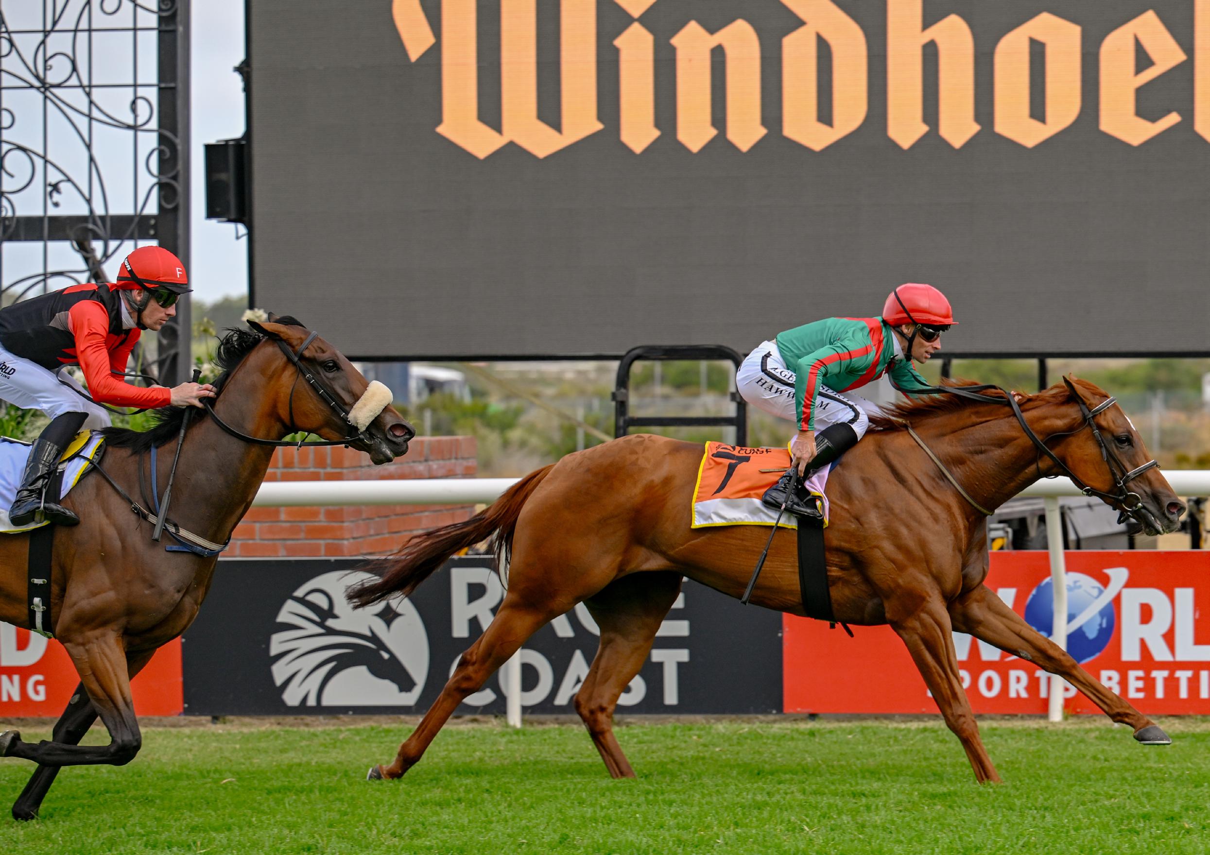 See It Again (Andrew Fortune) stayed on best to beat Legal Counsel (Aldo Domeyer) and third-placed The Real Prince (Craig Zackey, obscured)