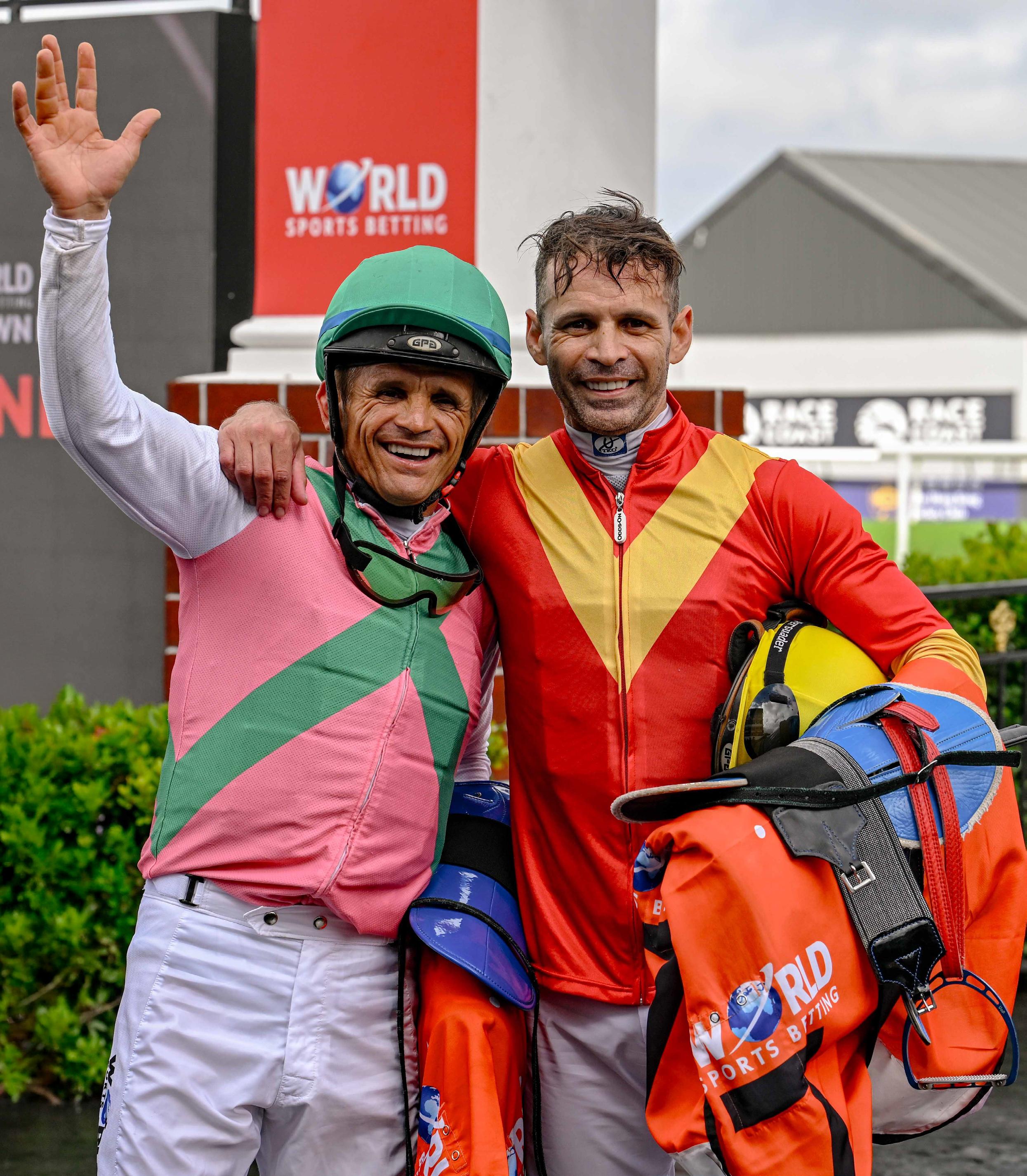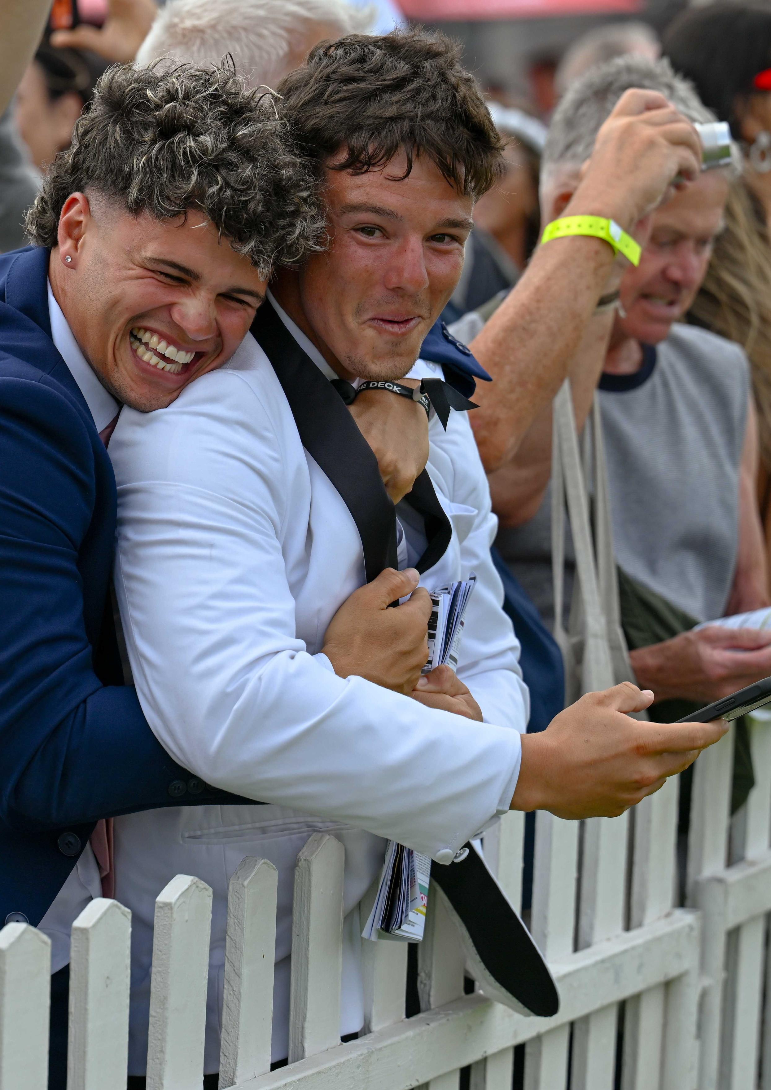 Two of Andrew Fortune’s biggest supporters at Hollywoodbets Kenilworth on Saturday were snapped in the moment by Chase Liebenberg, just as See It Again had sailed past the post to win the World Sports Betting Met. Andrew’s third son Keegan (left) gives his best friend Darren (or adopted brother, as he tagged him) a joyous hug after Dad won the big race for the first time in a career spanning over 40 years. Memories are made of this.