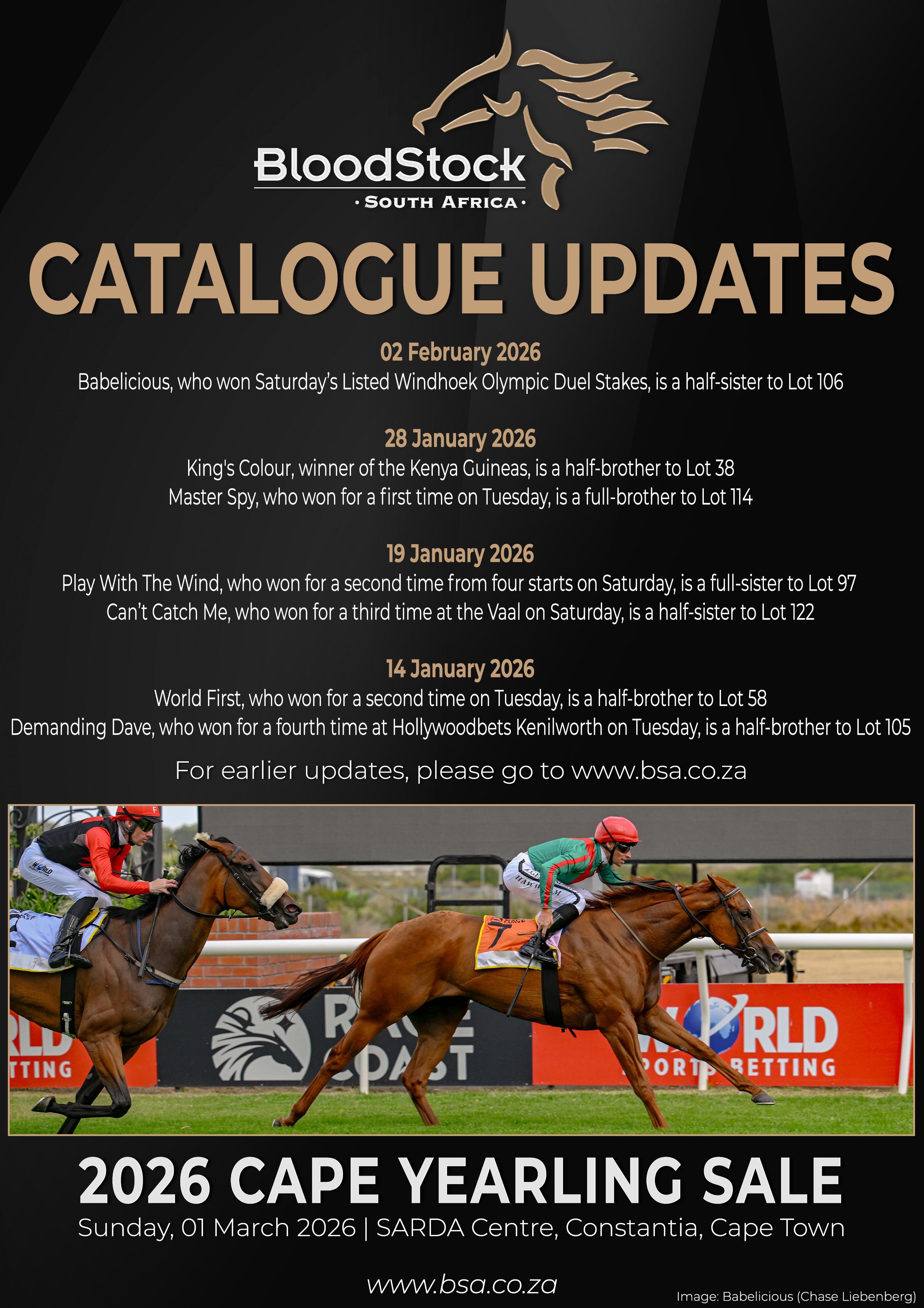 at the Easter Yearling Sale at Riverside on 29 and 30 March, nine at the Premier Yearling Sale on March 1-3 at Oaklands and three at next weekend’s Classic Yearling Sale, which starts next Sunday 08 February at Riverside and runs for three days.