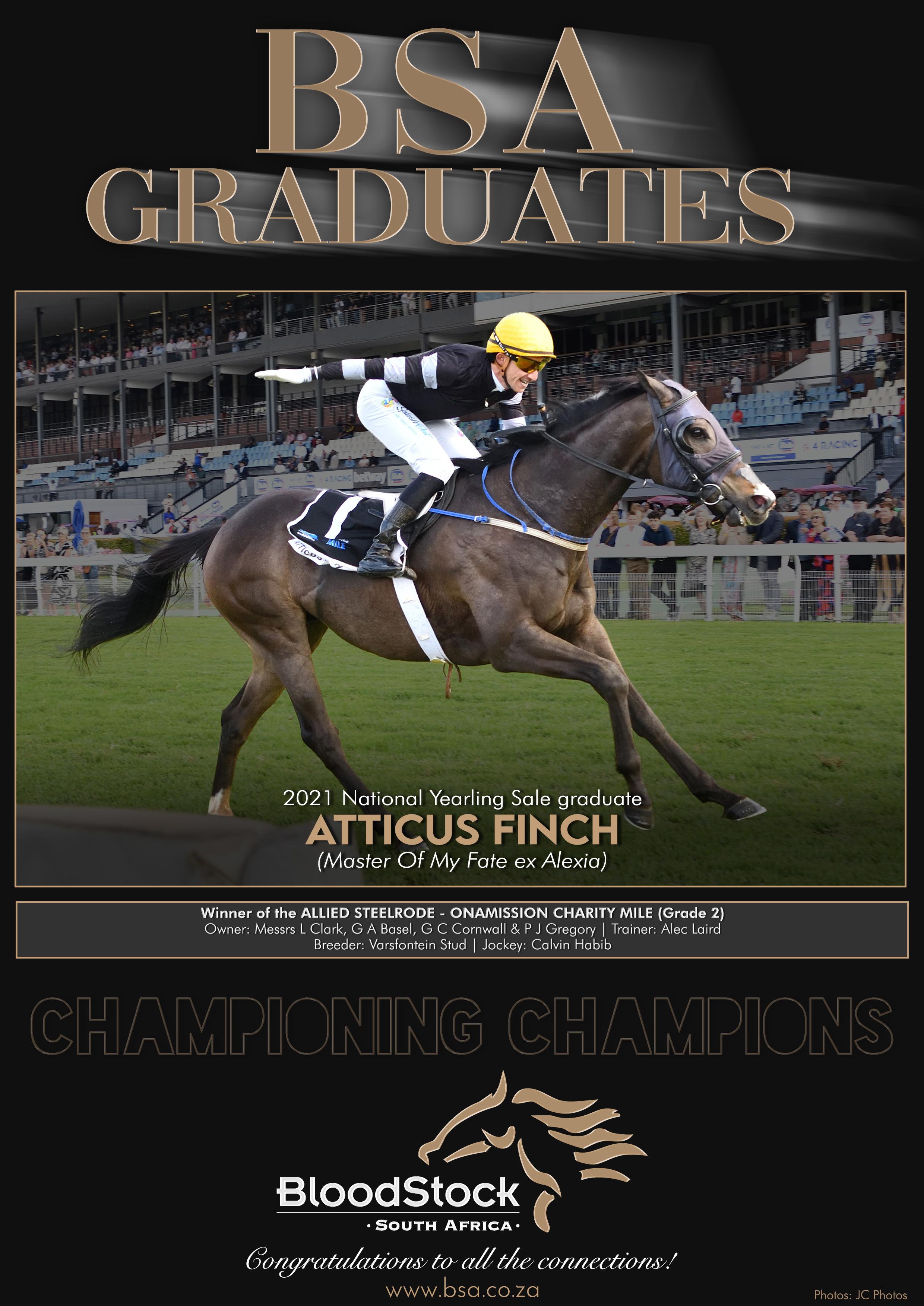 After his resounding win in the Allied Steelrode – Onamission Gr2 Charity Mile at Turffontein on Saturday, Atticus Finch now tops the log for the Betway Summer Cup over 2000m at Turffontein on Saturday 29 November.