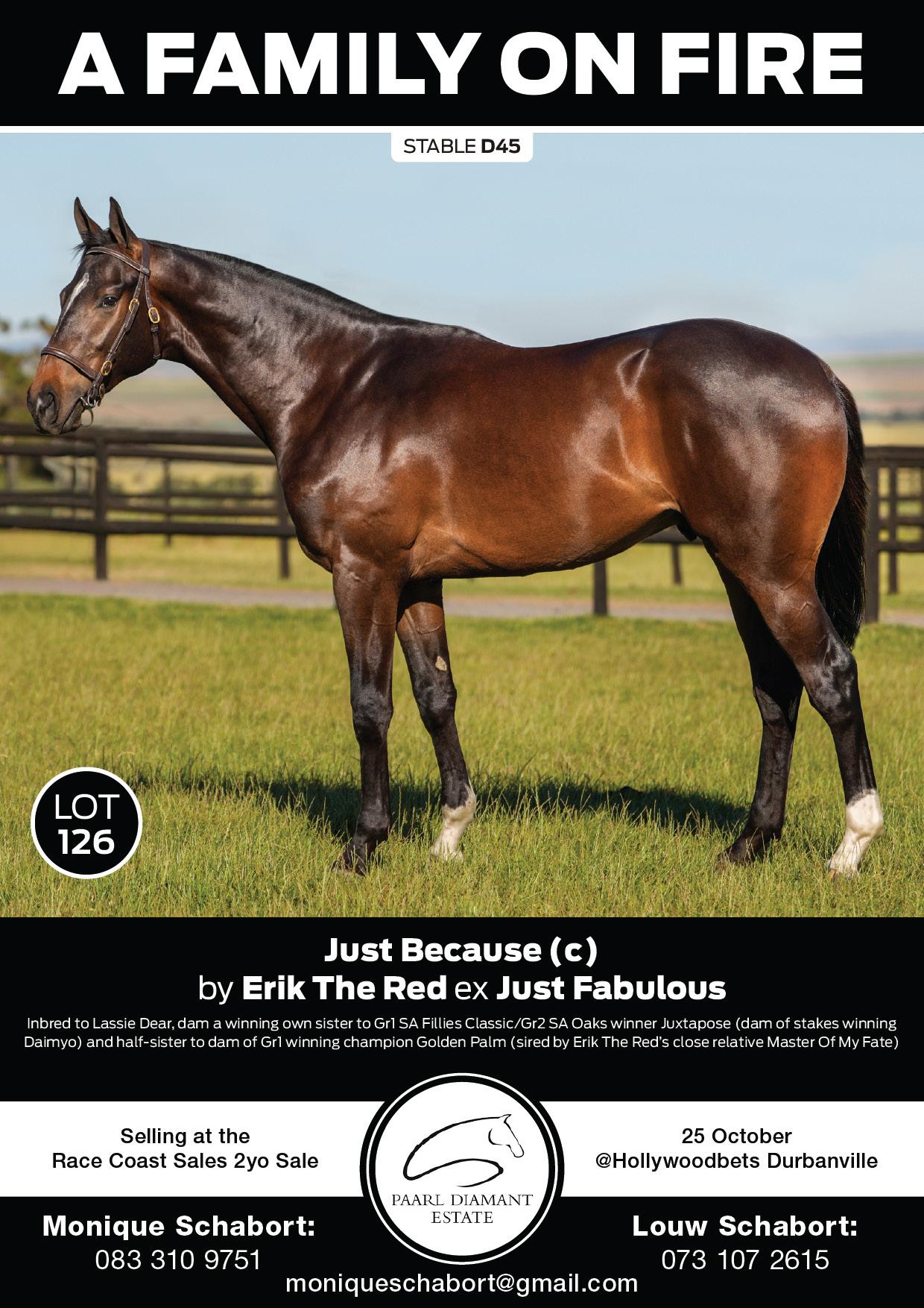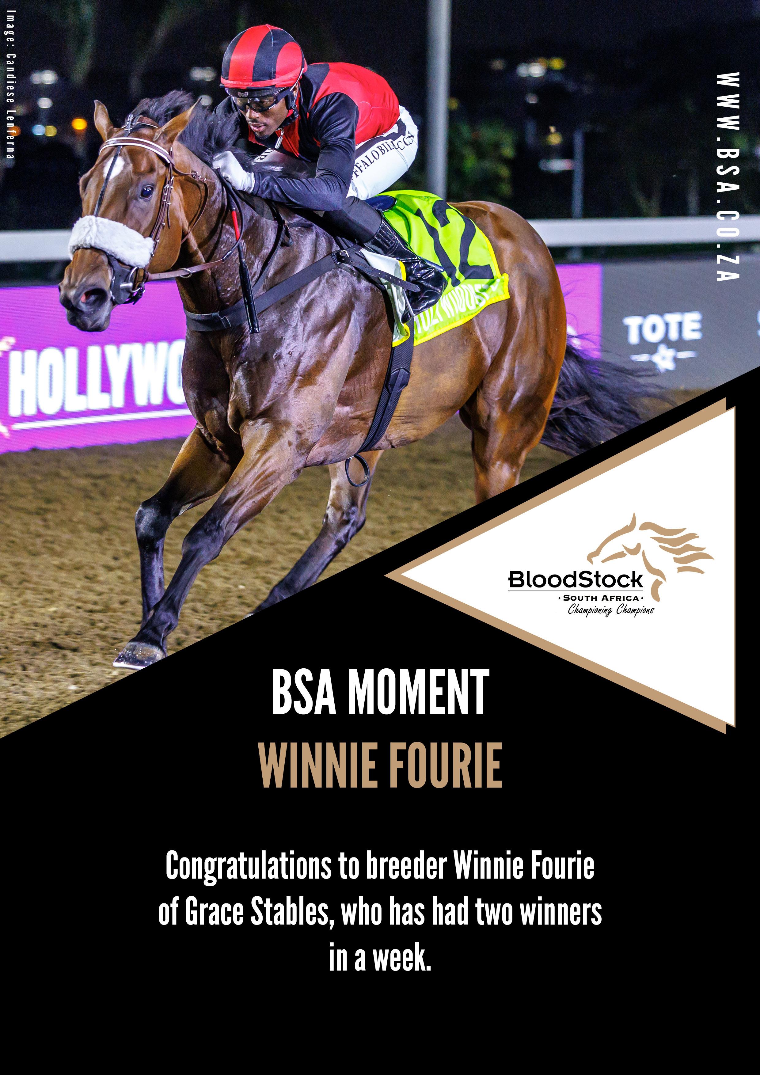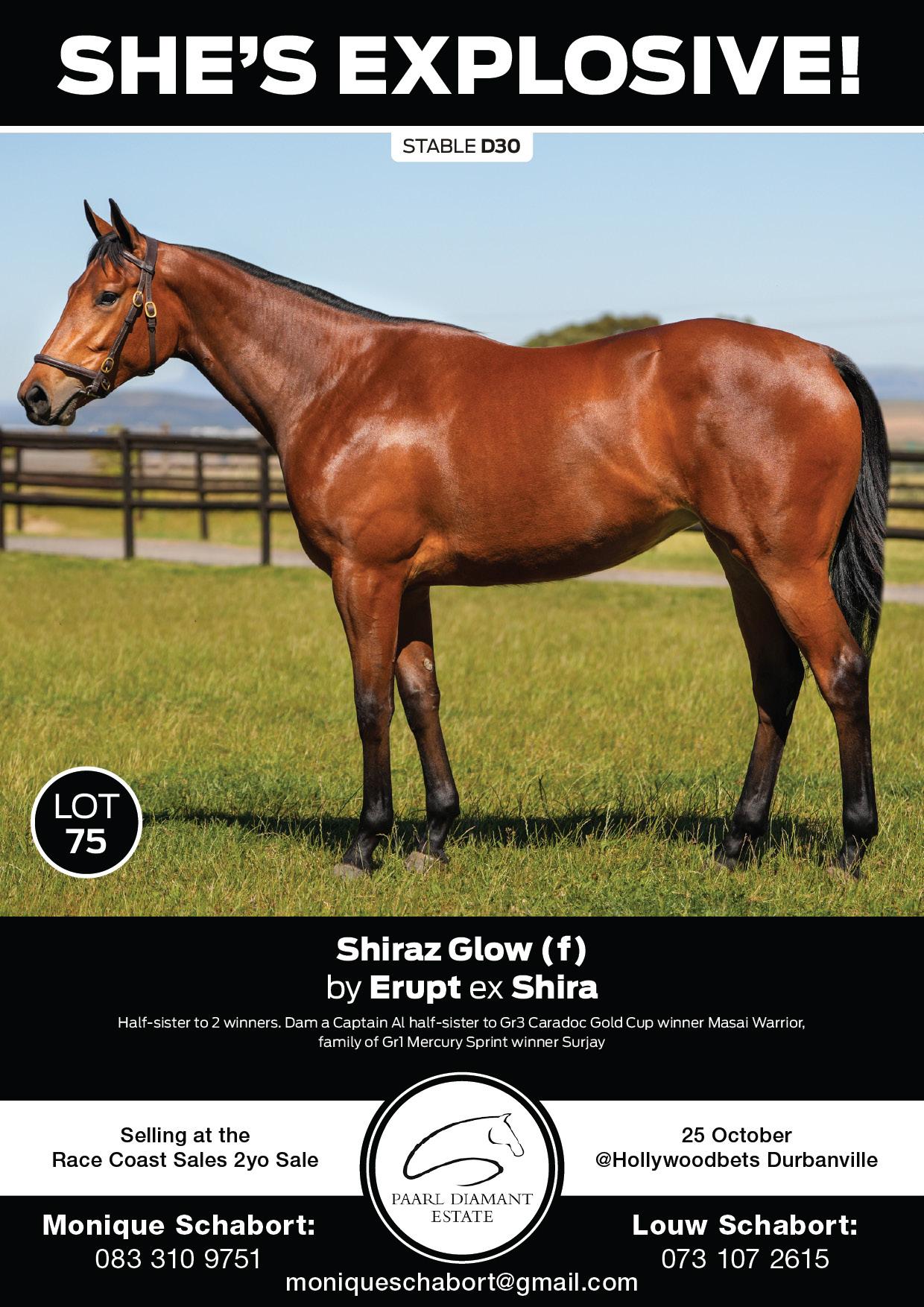 debut in the Listed Storm Bird Stakes where she ran her male rivals off their feet, a feat she emulated in the Gr2 SA Nursery. She matured into a sprinter of note and again blitzed male rivals in the Listed Golden Loom Handicap at Turffontein.