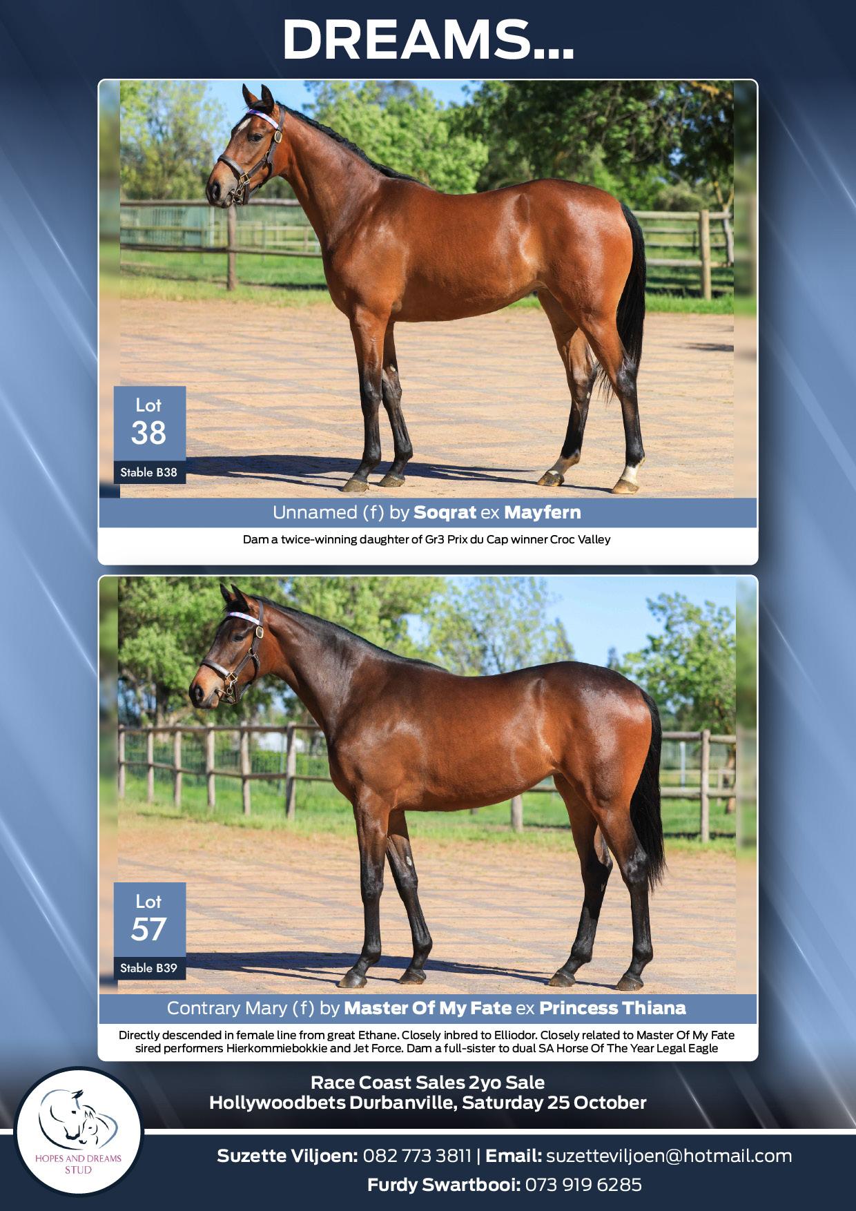 As for Tin Pan Alley, he flashed his talent as a two-year-old when he scored twice and closed out the season with a second to champion Jan Van Goyen in the Gr1 Premiers Champion Stakes, prior to which he had finished third in the Gr2 Golden Horseshoe. He will now be aimed at the Gr3 Graham Beck Stakes and the Gr2 Dingaans.