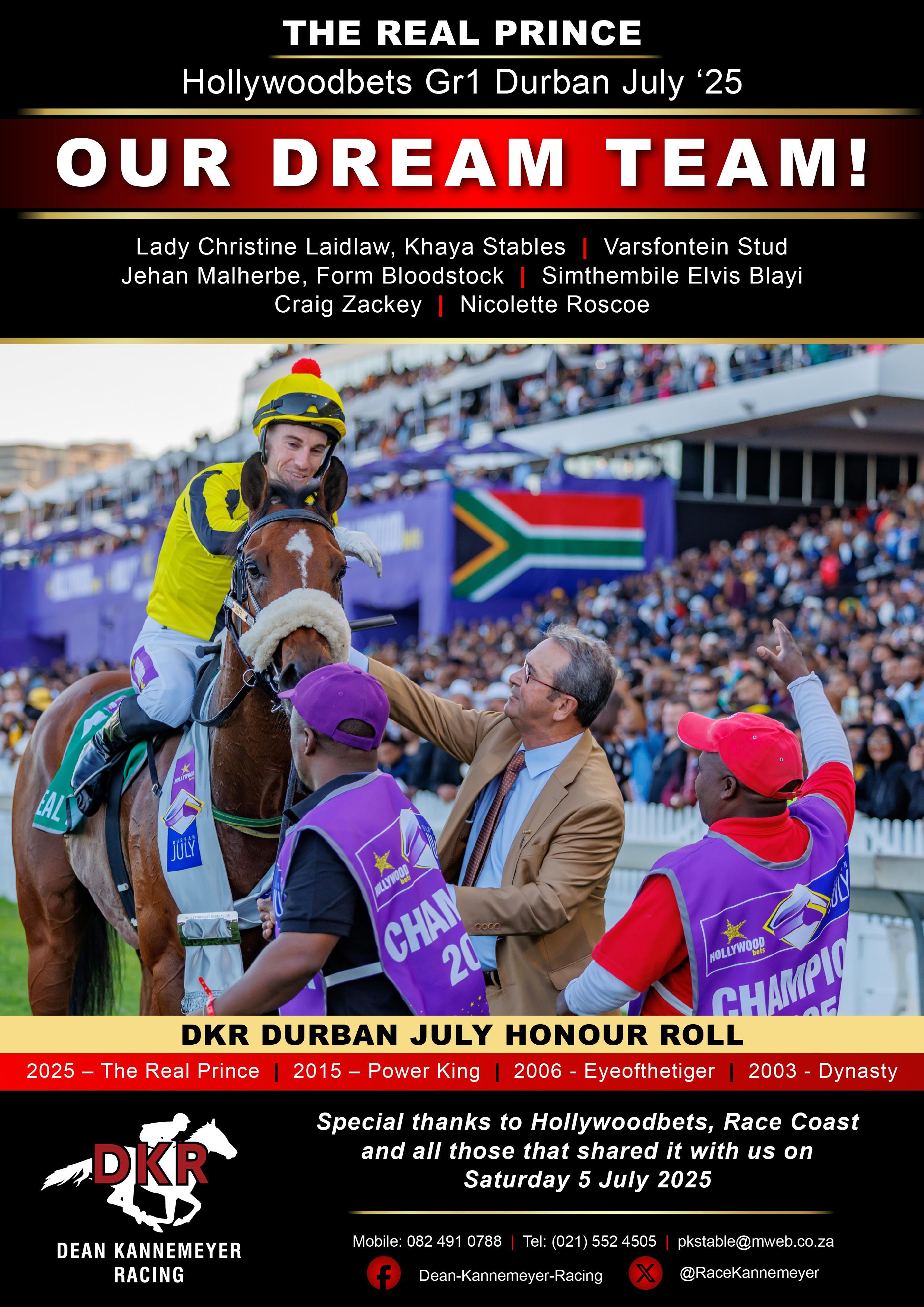 The July is the culmination of months of preparation, determination and the heart-felt desire to win an event which is still considered the holy grail of South African racing, so hats off to trainer Dean Kannemeyer for a masterful training feat,