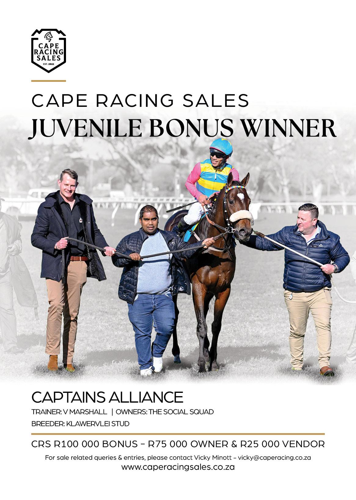 A R180 000 National Yearling Sale purchase, the winner took his stakes tally to R1 028 938, including his bonus, with his fifth win and a place from 10 starts.